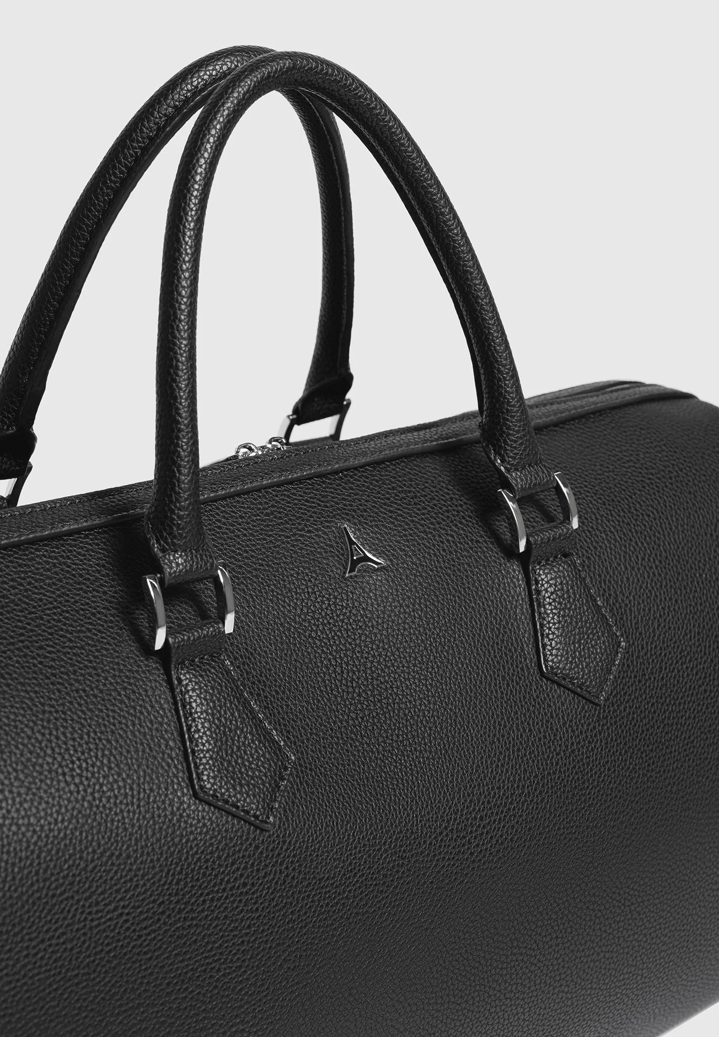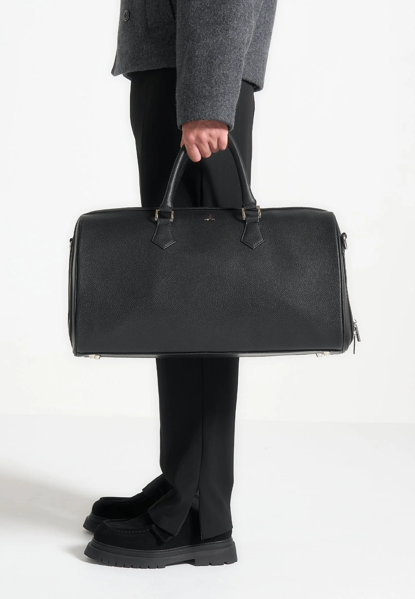 The Éternel Travel Bag in Black is a travel essential designed for those on the go. With a wide, spacious interior and sturdy leather handles, it is built to carry all your necessities with ease. Its sleek, minimalist look makes it a reliable option for both weekend getaways and daily commutes.