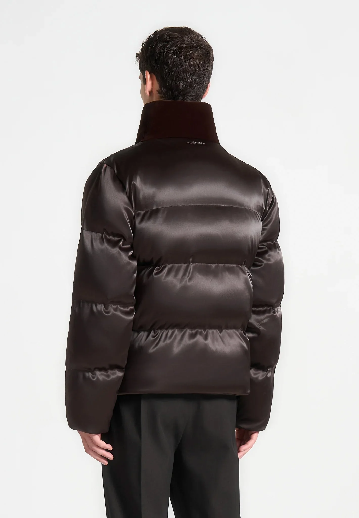 Alaric – Satin and Velvet Paneled Puffer Jacket – Brown