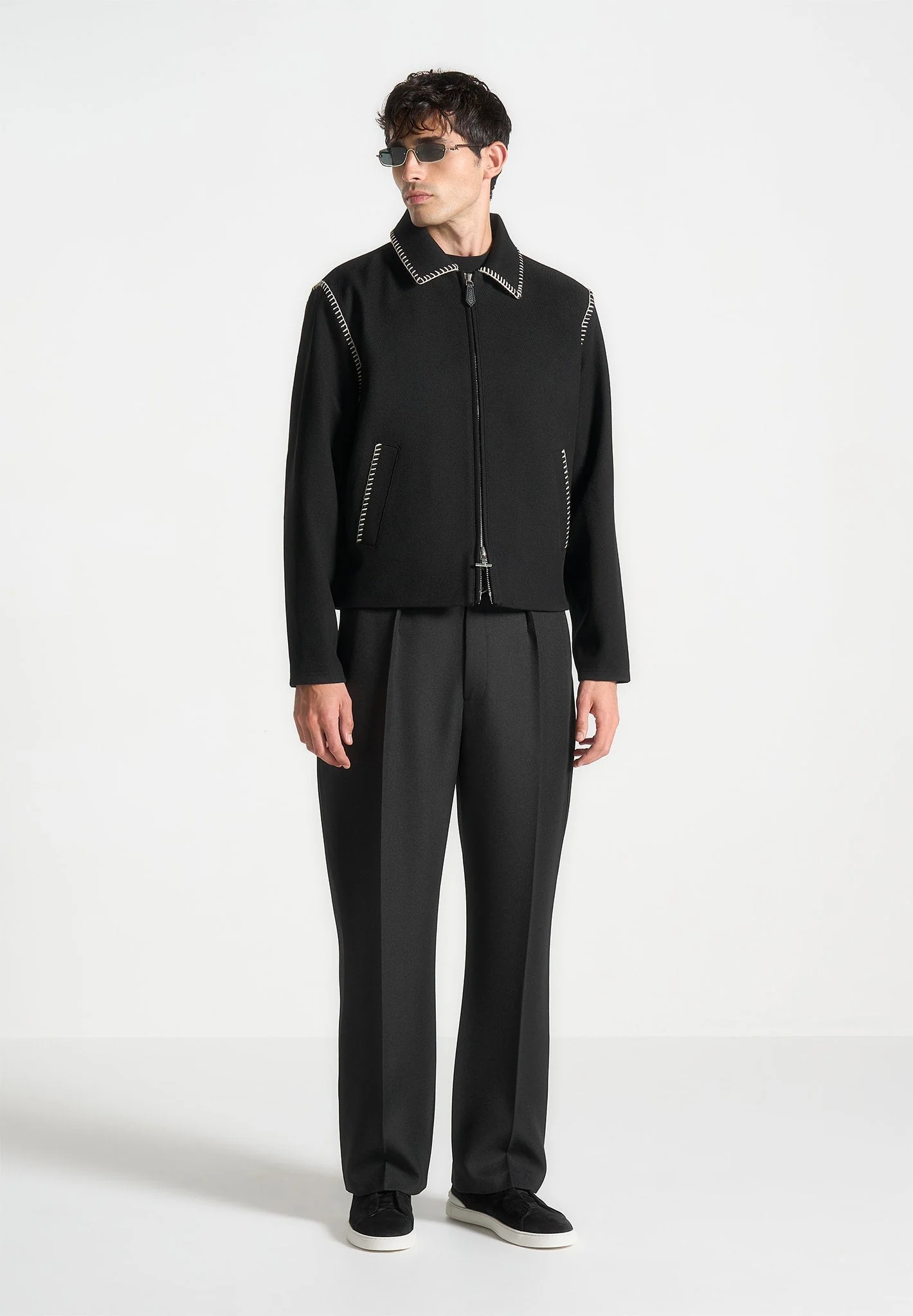 Alex – Whipstitch Twill Boxy Jacket – Black
