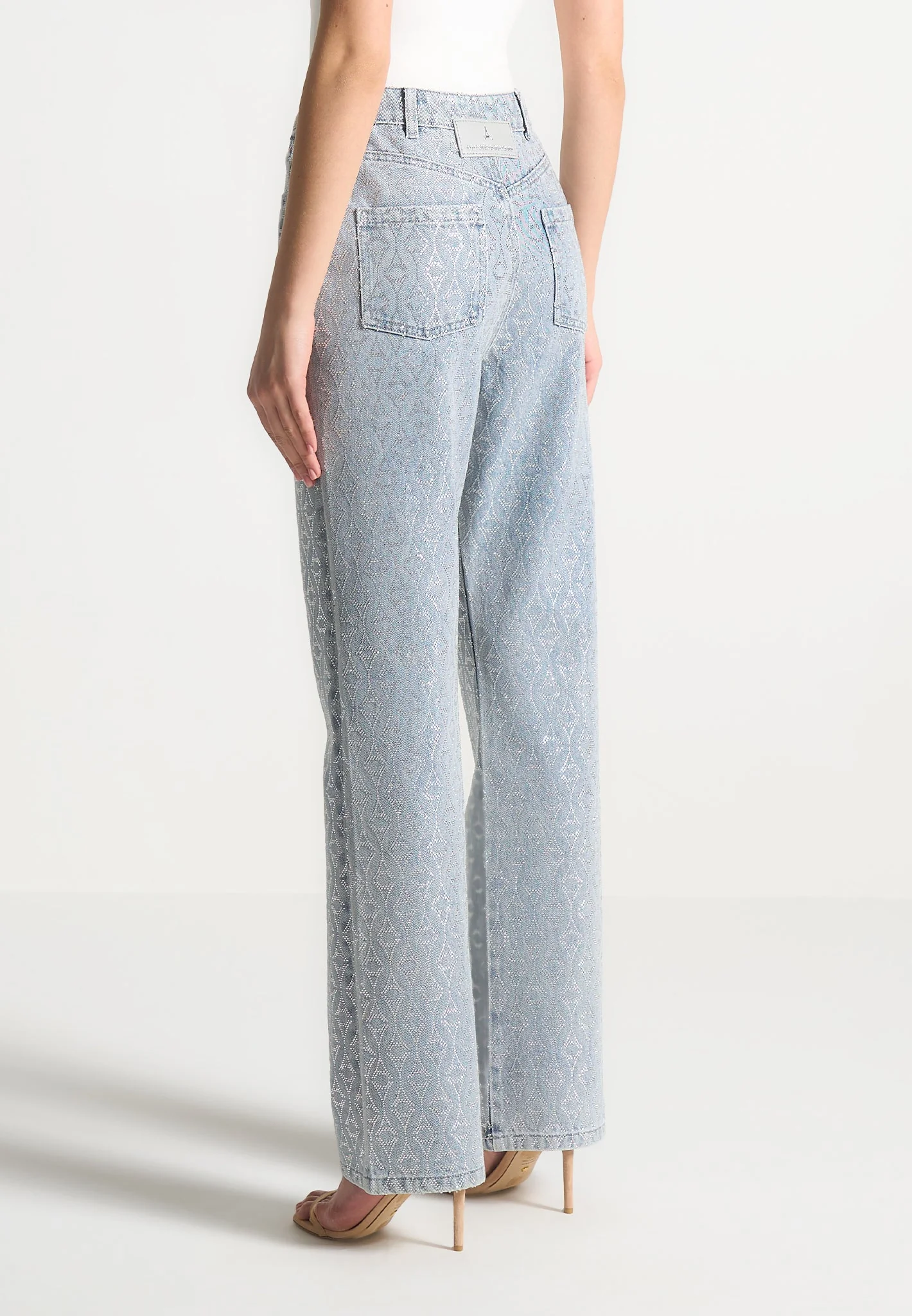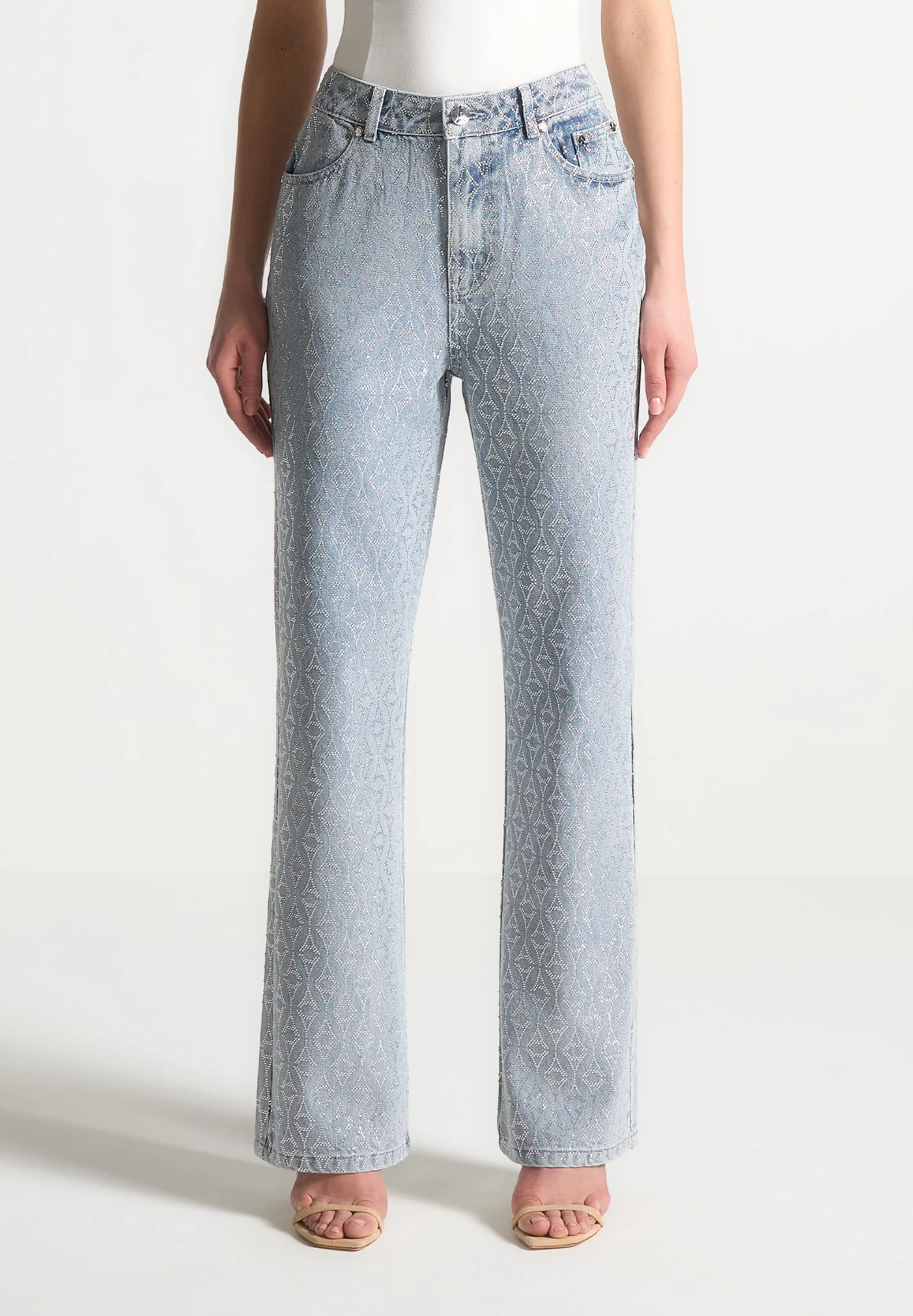 Alma – Rhinestone Eiffel Straight Leg Jeans – Mid Blue
