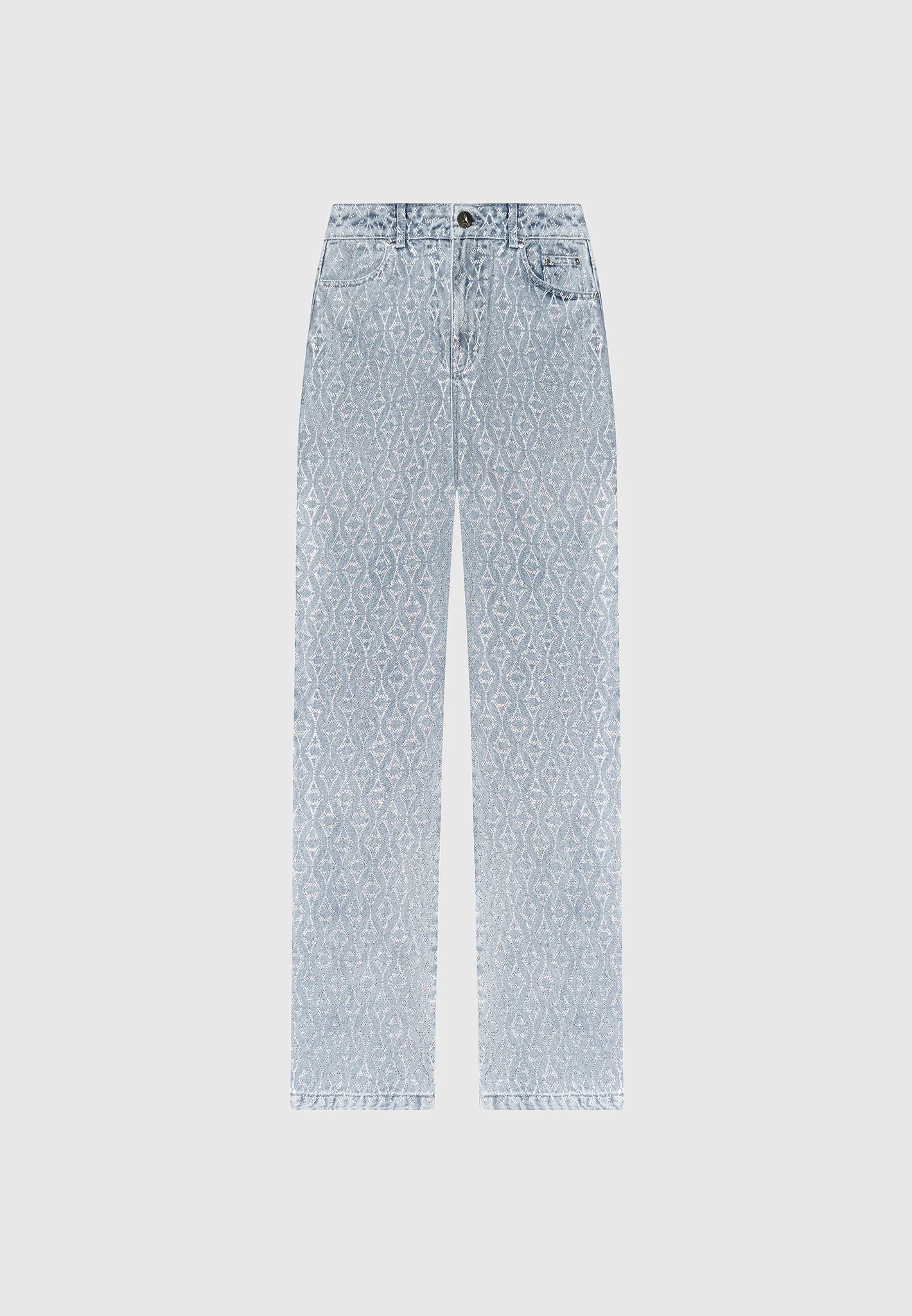 These mid-blue straight leg jeans are the perfect choice for a night out. The glamorous rhinestone detailing will make you stand out with a touch of elegance. With these jeans, you’ll look and feel like a fashion expert.