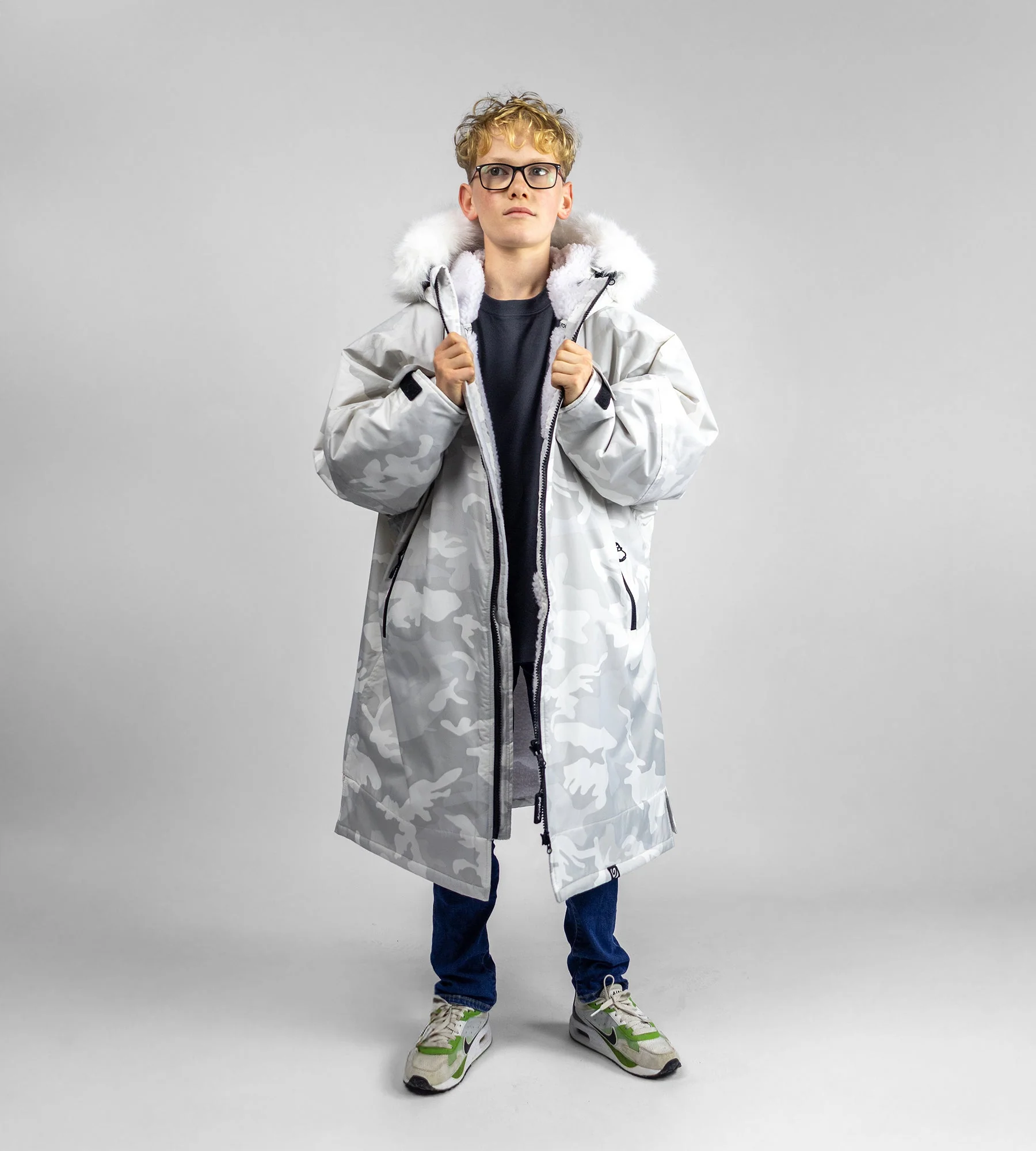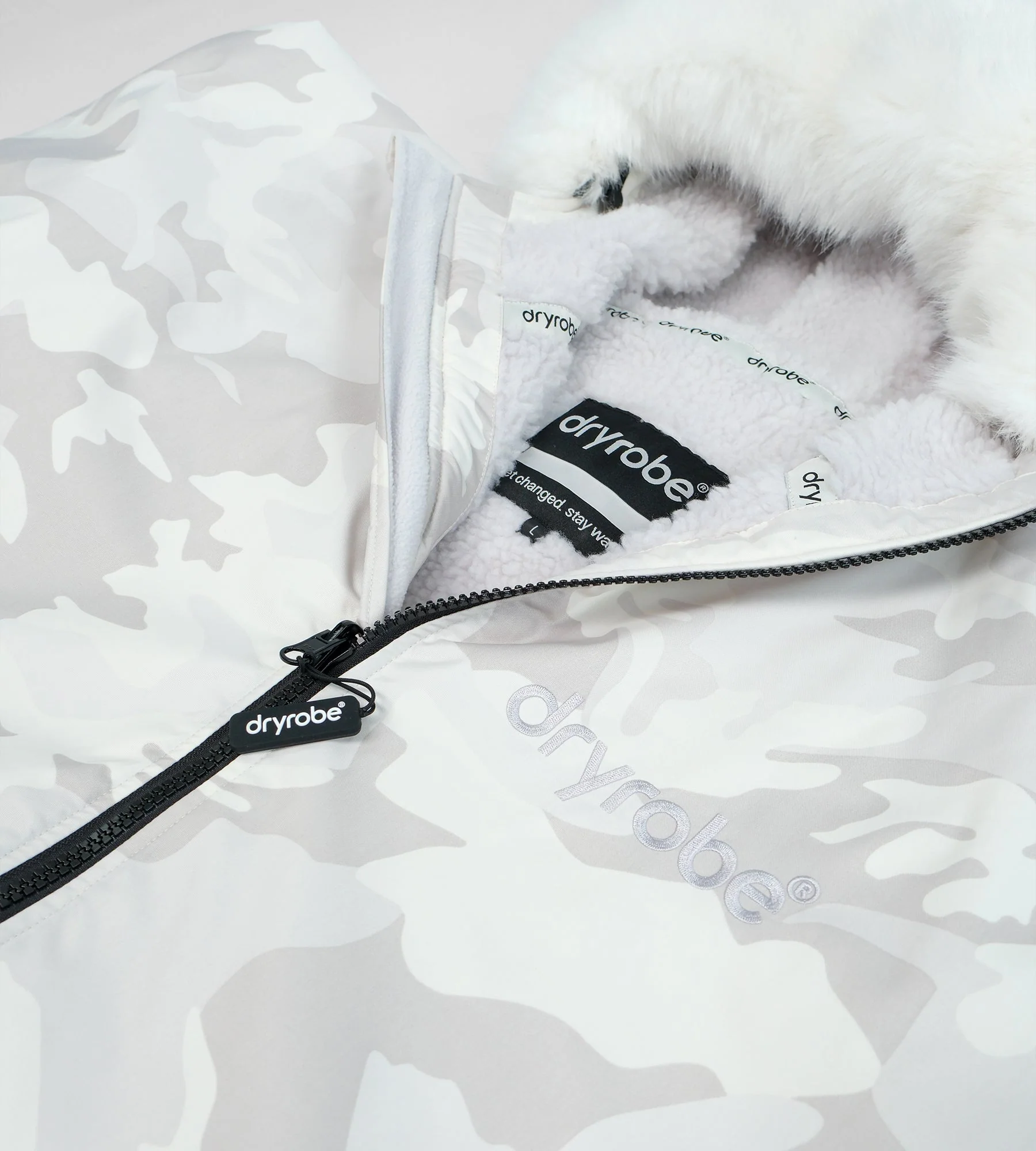 Our Special Edition Alpine design features a White Camo print and a detachable faux fur trim on the fleece-lined hood for extra warmth.