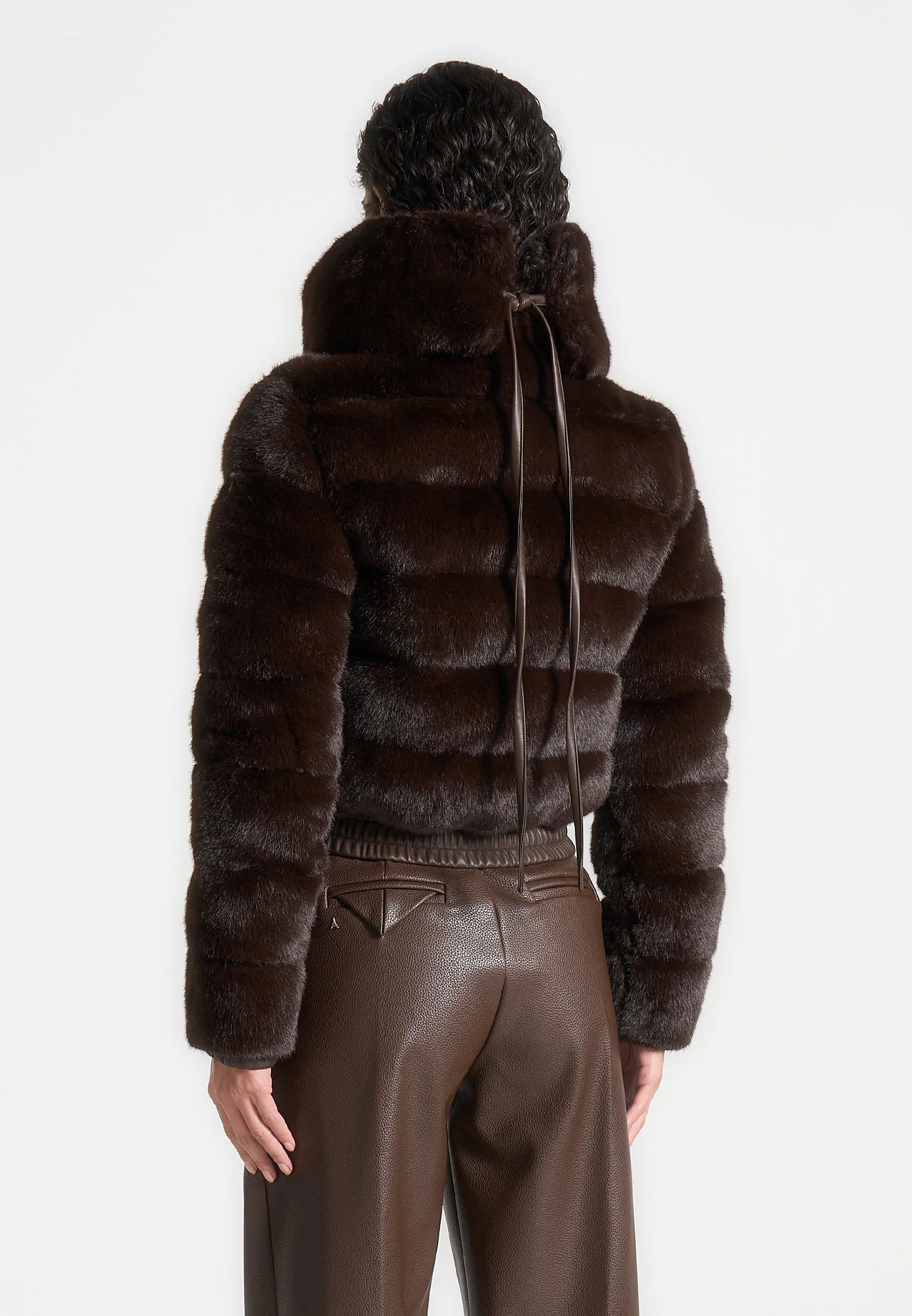 Ama – Plush Ribbed Jacket with Neck Scarf – Brown