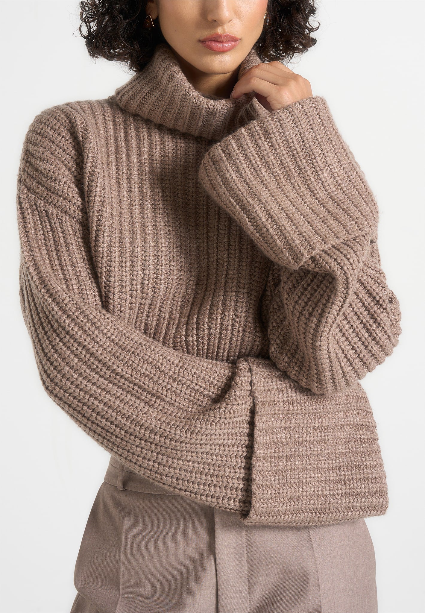 Amaya – Roll Neck Knit Jumper With Cuffs – Taupe