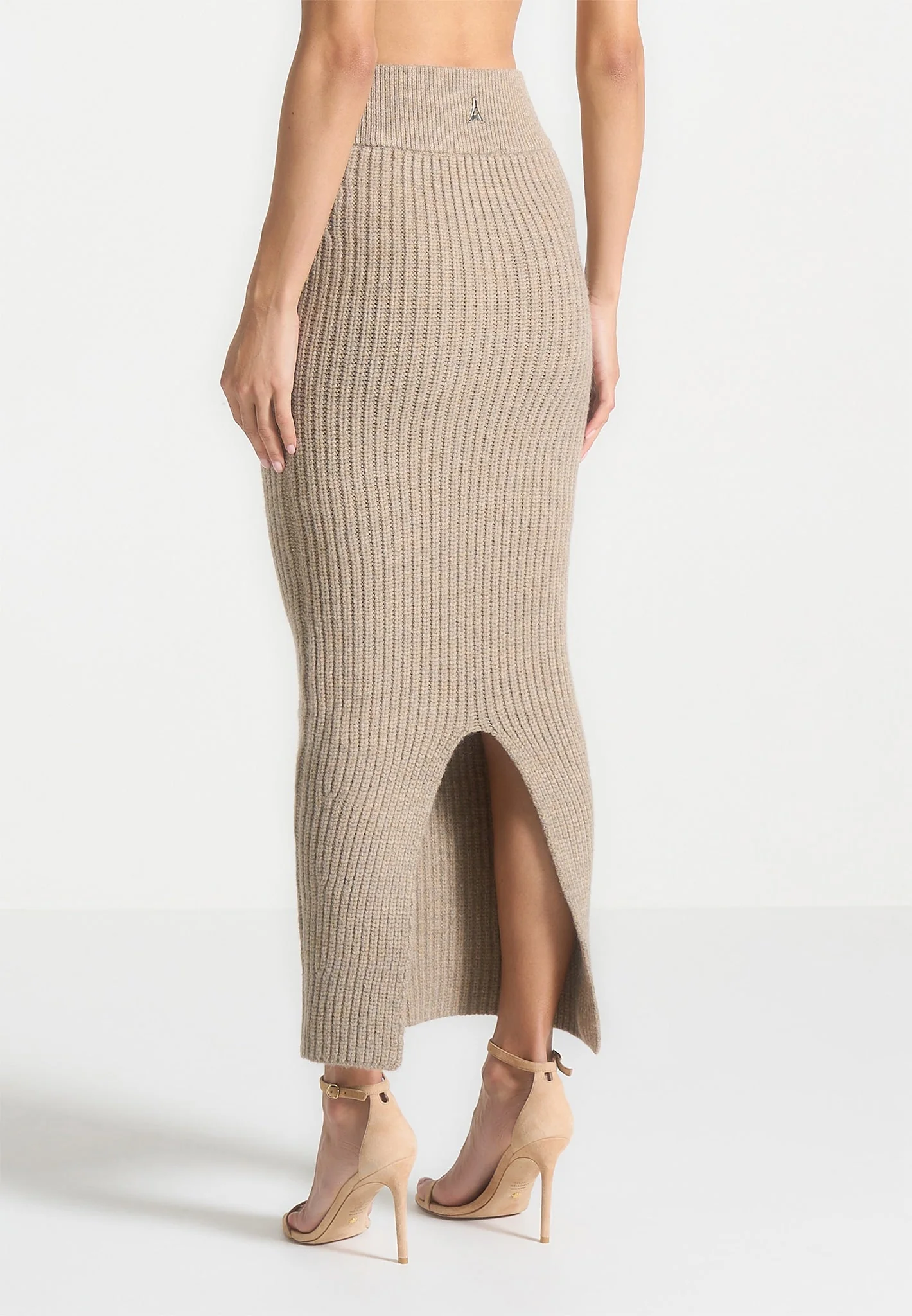 Angled Waist Knit Maxi Skirt – Beige Marl