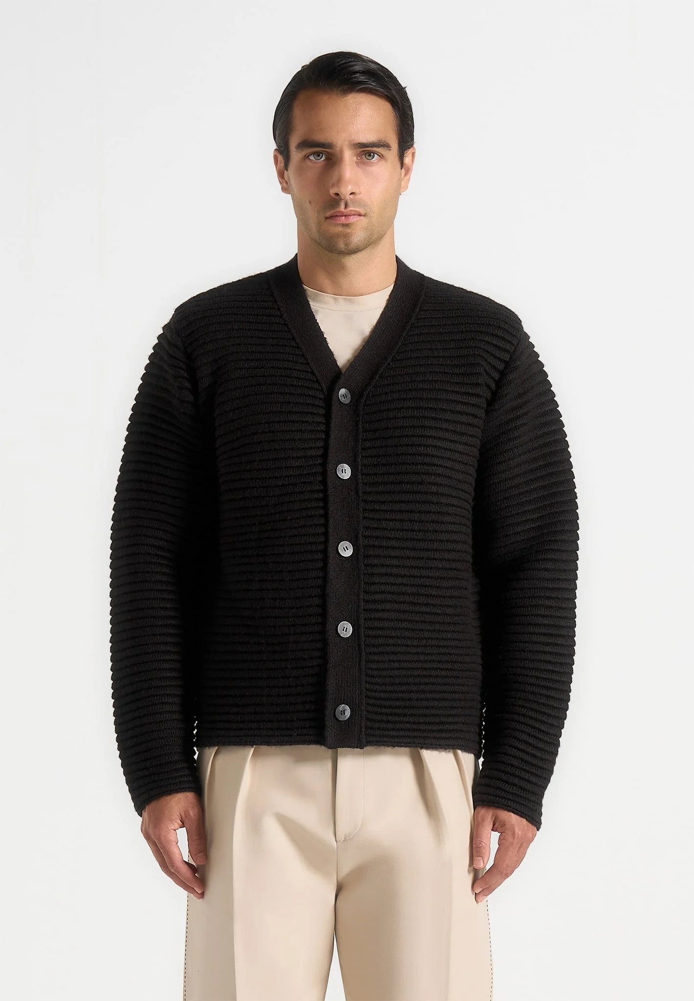 Defined by a heavyweight horizontal rib knit, this cardigan delivers both structure and texture for a refined finish. Designed in a regular fit for all-day comfort and easy layering, it’s elevated with marble feature buttons that introduce a subtle point of distinction. The classic silhouette makes it a timeless, versatile piece that transitions effortlessly across occasions.