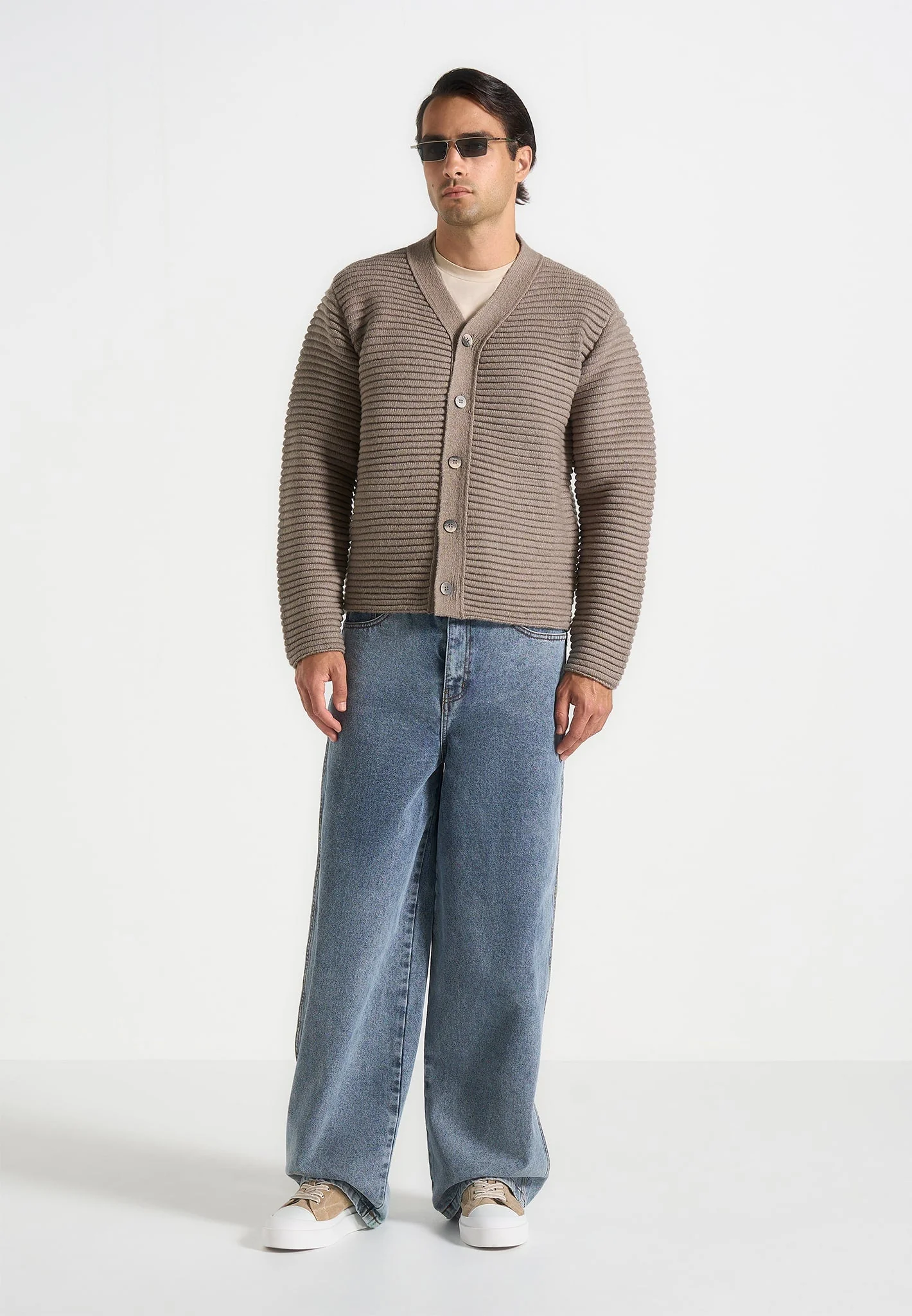 Anton – Ribbed Knit Cardigan – Taupe