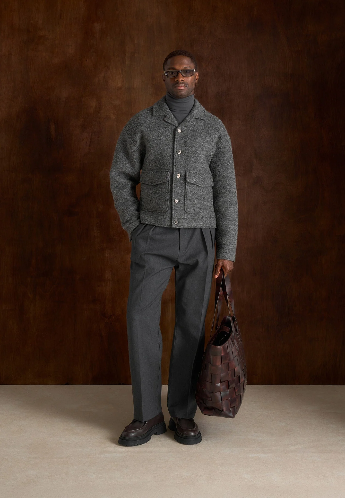 - Crafted from wool fabric for a soft, elevated finish