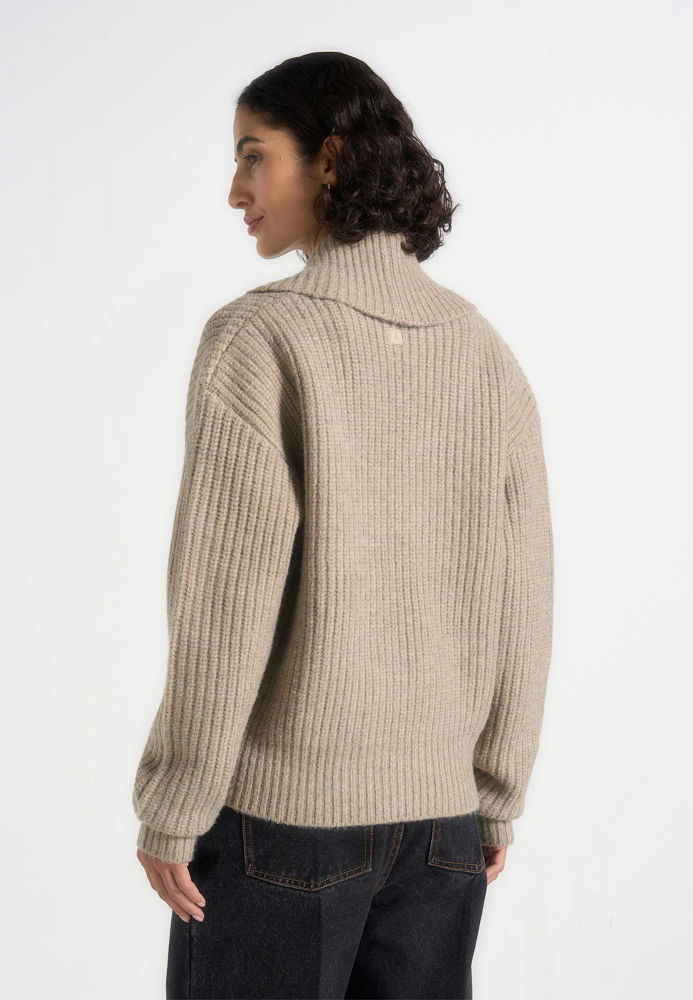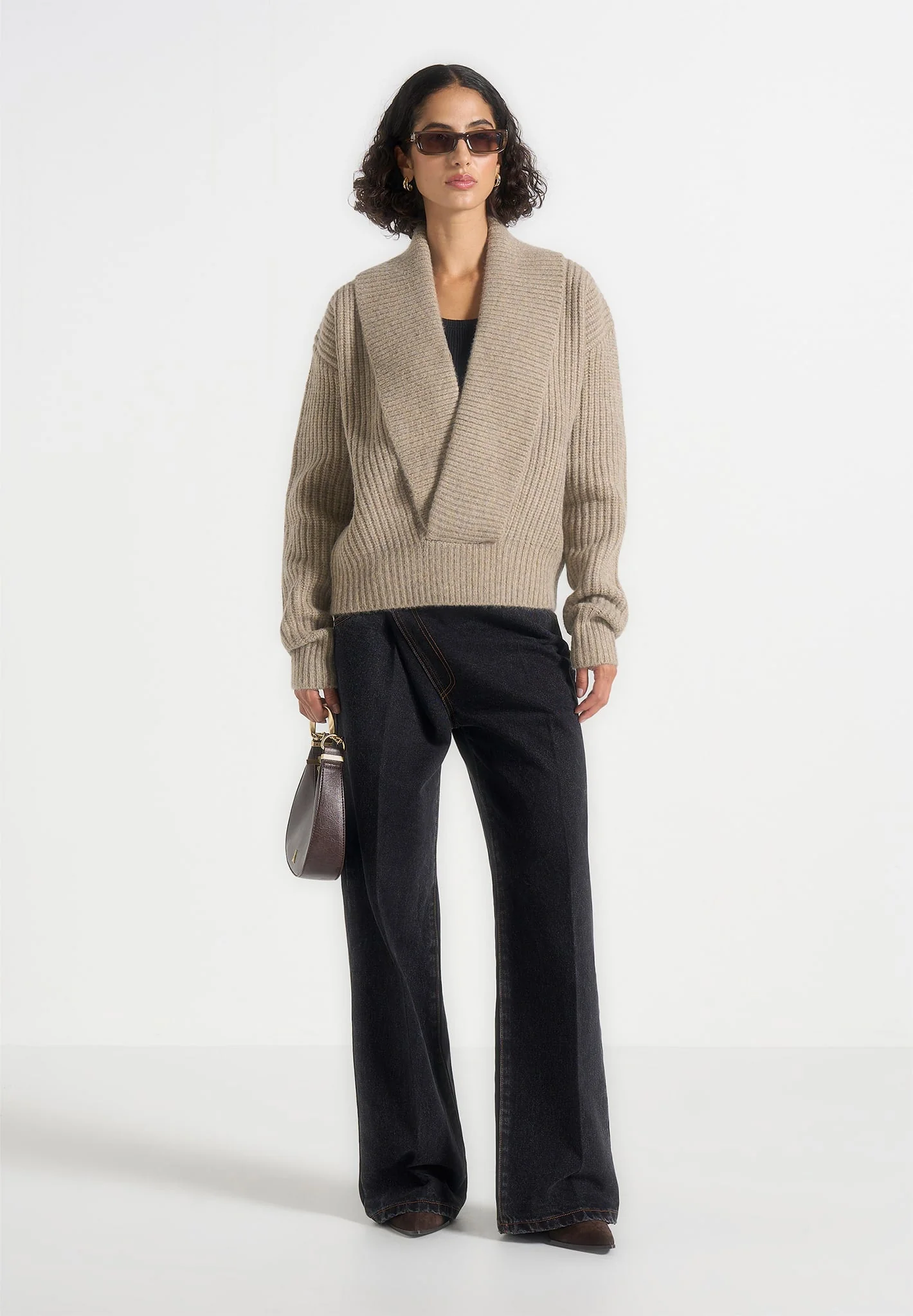 Azra – Plunge Knit Jumper – Taupe