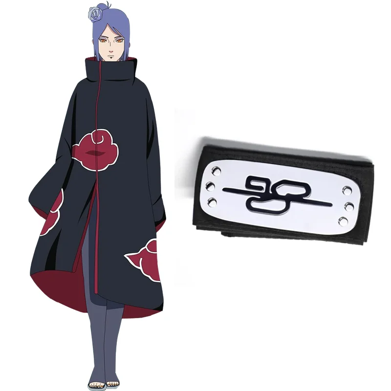 Le bandeau arbore le symbole de l’Akatsuki, un nuage rouge, symbole de l’organisation criminelle dont Konan est membre.