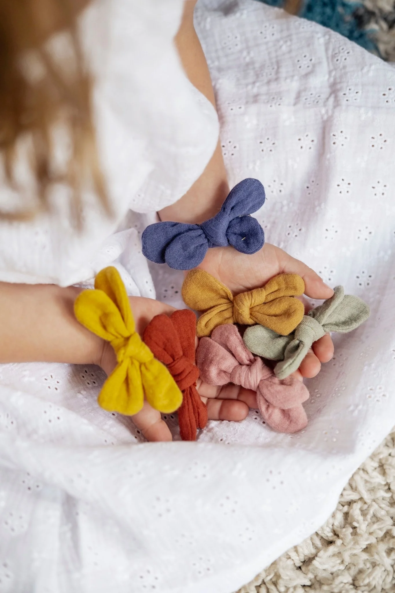 Ajoutez une touche de douceur et d’élégance aux coiffures de vos enfants avec nos barrettes à nœud en gaze de coton. Grâce à leur pince crocodile, elles sont faciles à fixer et tiennent parfaitement toute la journée, même sur les cheveux fins.