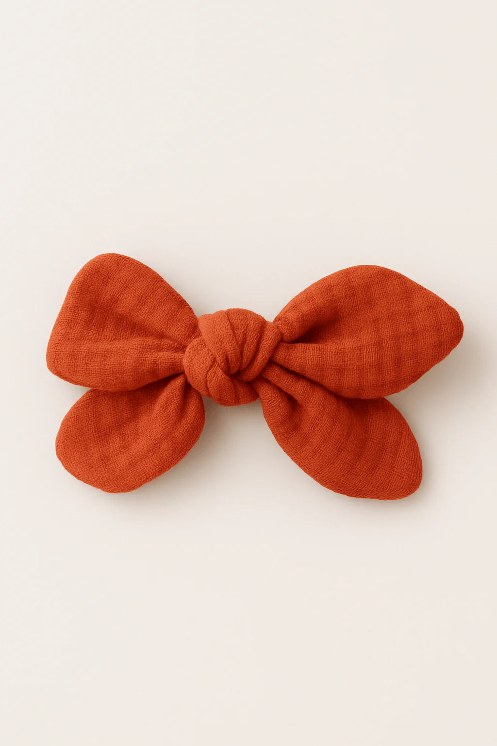 Barrette nœud gaze de coton terracotta pour cheveux accessoire vêtement enfant