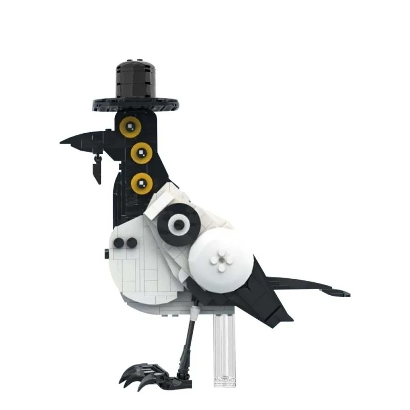Sussie, l’oiseau mystique à chapeau haut de forme, compagnon fidèle de Derpy, reprend vie à travers un assemblage ingénieux de pièces détaillées et colorées.