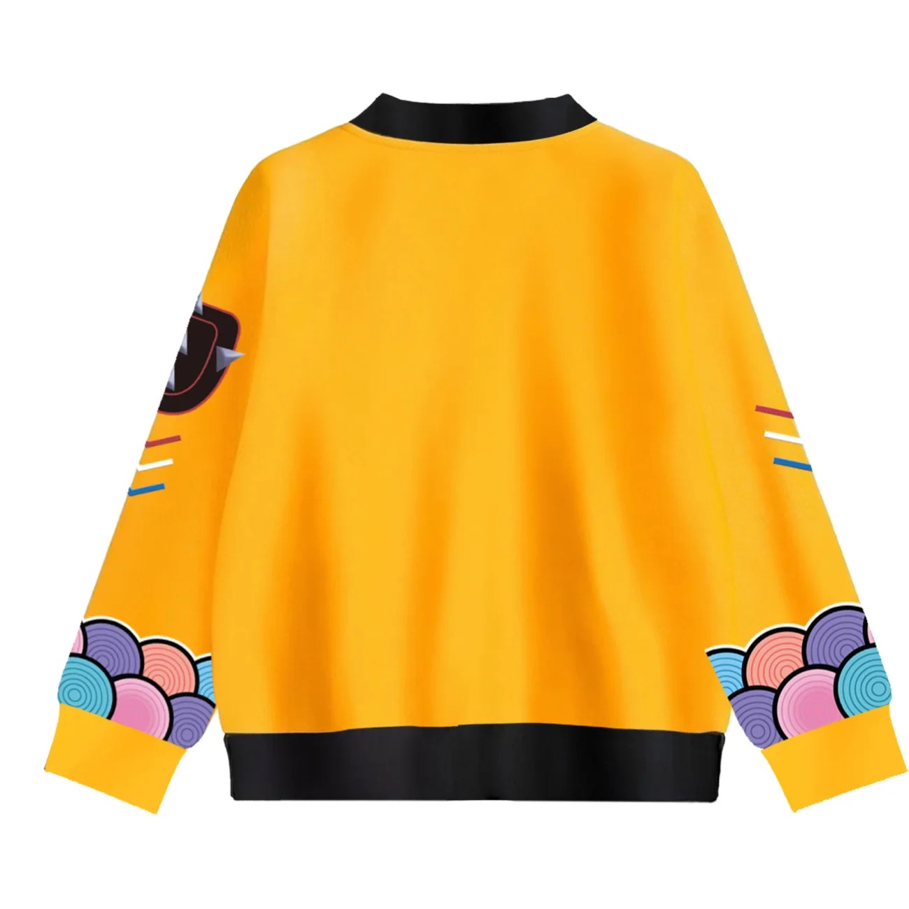 Adoptez le style Rumi avec la veste KPOP Demon Hunter ! Un blouson jaune vif aux motifs colorés, inspiré du film culte et conçu pour les jeunes fans d’univers K-pop.