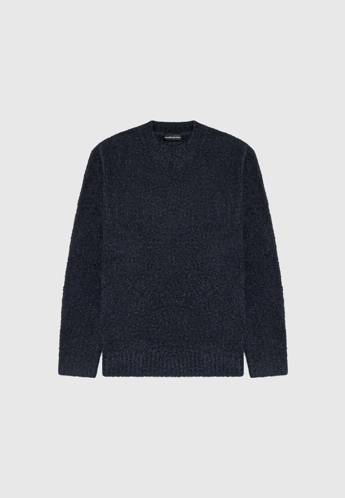 The Boucle Knit Jumper is a timeless classic crafted from a soft-touch boucle fabric. This luxurious-feeling fabric is lightweight, yet durable, making it ideal for wearing year-round. Sweater Silhouette Soft Touch Boucle Fabric Crew Neck Ribbed Trims Silver Manière De Voir Eiffel Plaque