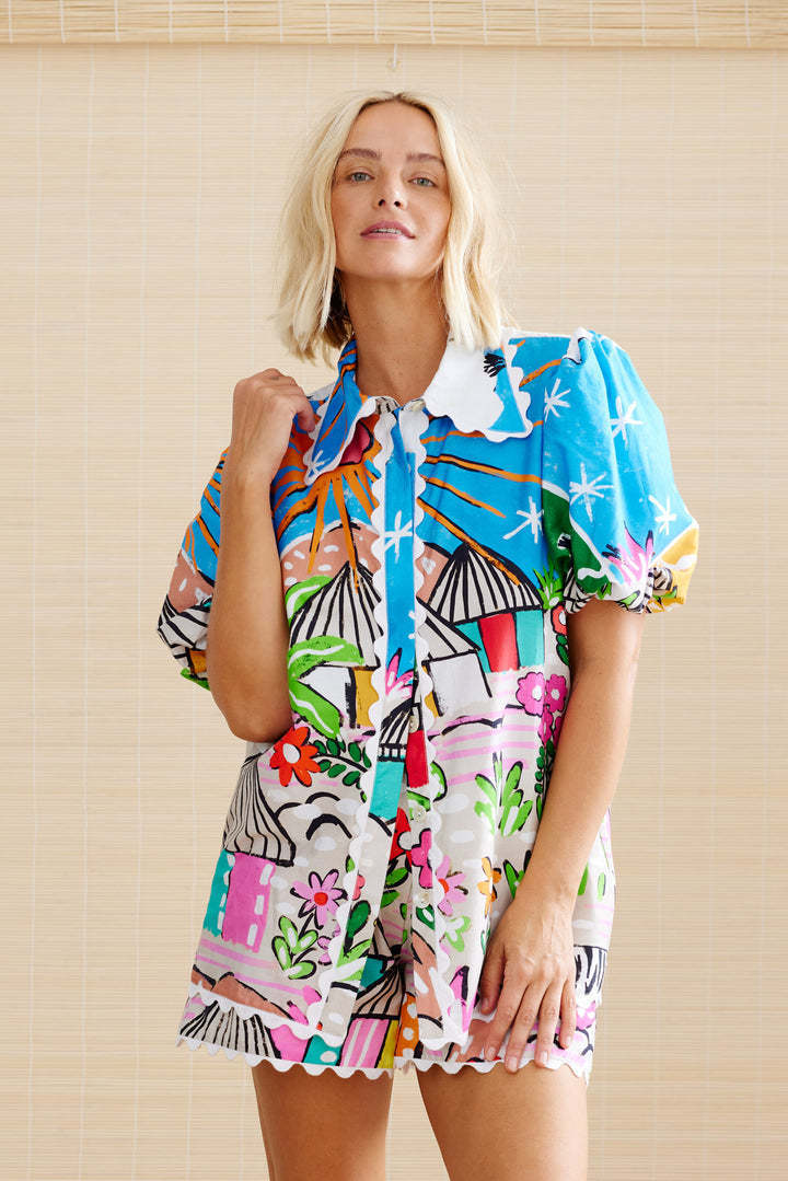Cardigan Femme Ensemble Chemise – Coton Respirant – Coupe Décontractée – Col en Dentelle – Manches Bouffantes