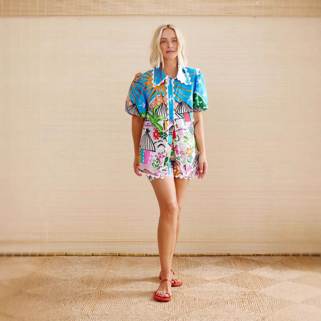 - Design : Coupe décontractée avec col en dentelle et manches bouffantes