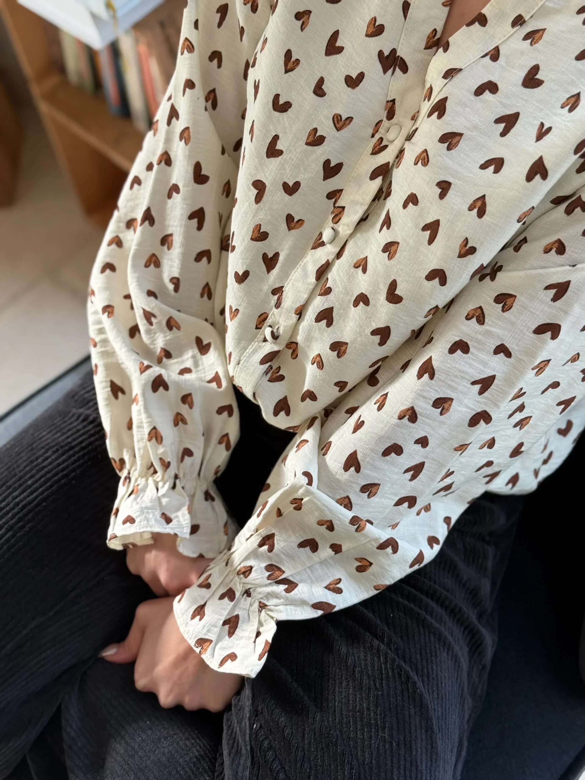 La chemise qui fera toute la diff’ à ton look 🖤 Détails : 80% coton, 20% polyamide Motif : coeur Boutonné de haut en bas Decolleté en V