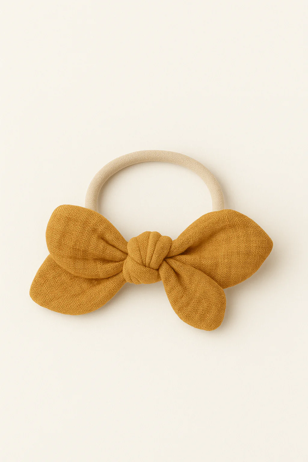 Chouchou cheveux fille nœud accessoire vêtement en gaze de coton camel