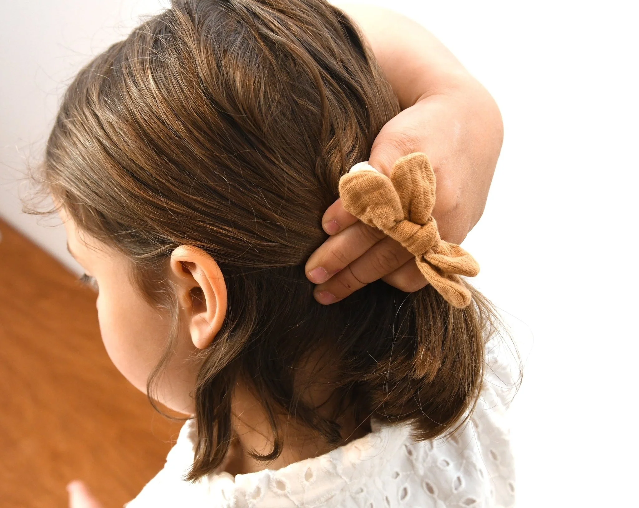 Nos chouchous pour enfants en gaze de coton sont l’accessoire parfait pour ajouter une touche colorée aux coiffures de vos petits ! Avec un élastique beige tout doux et un joli nœud en gaze de coton, ces chouchous sont disponibles en 8 couleurs pour s’assortir à toutes ses tenues.