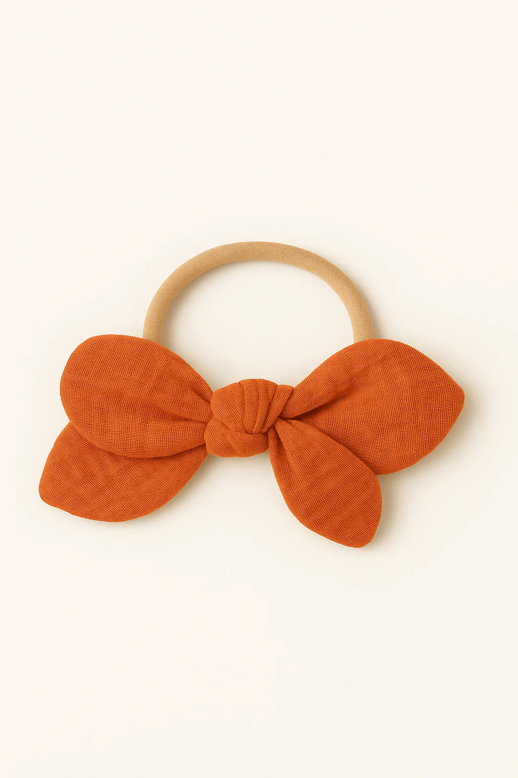 Barrette nœud gaze de coton tangerine pour cheveux accessoire vêtement enfant