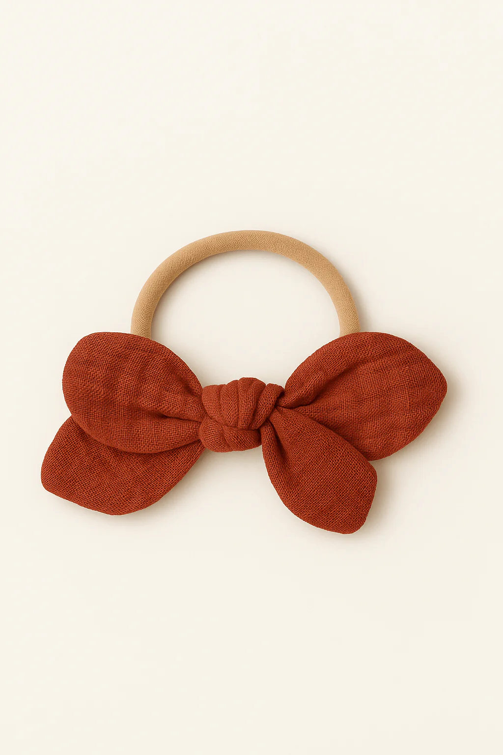 Chouchou cheveux fille nœud accessoire vêtement en gaze de coton terracotta