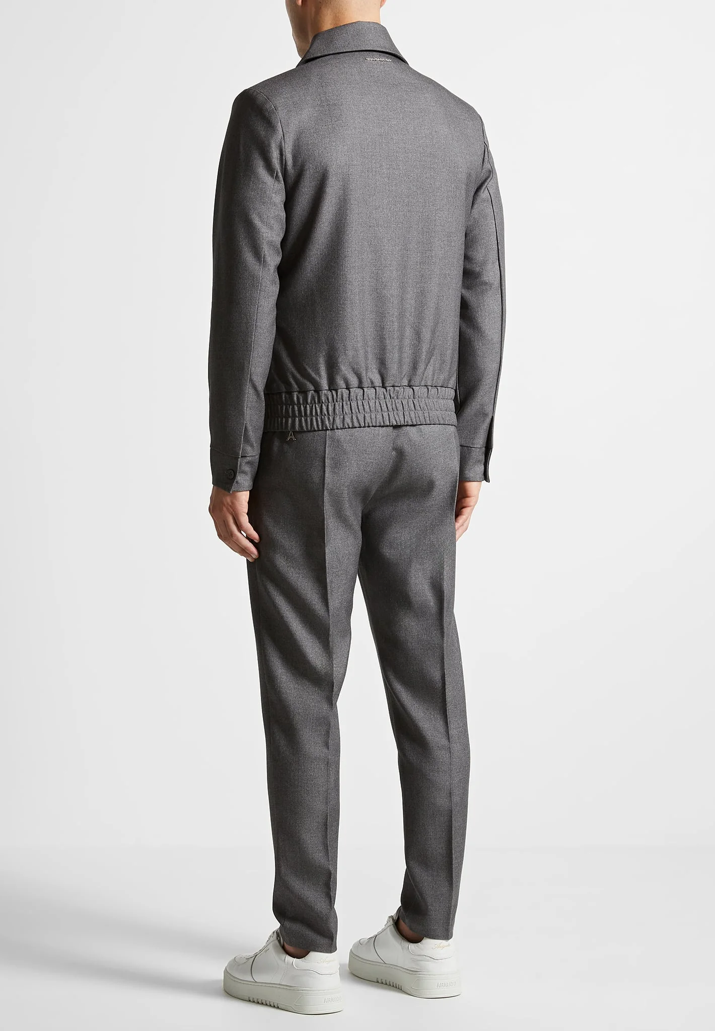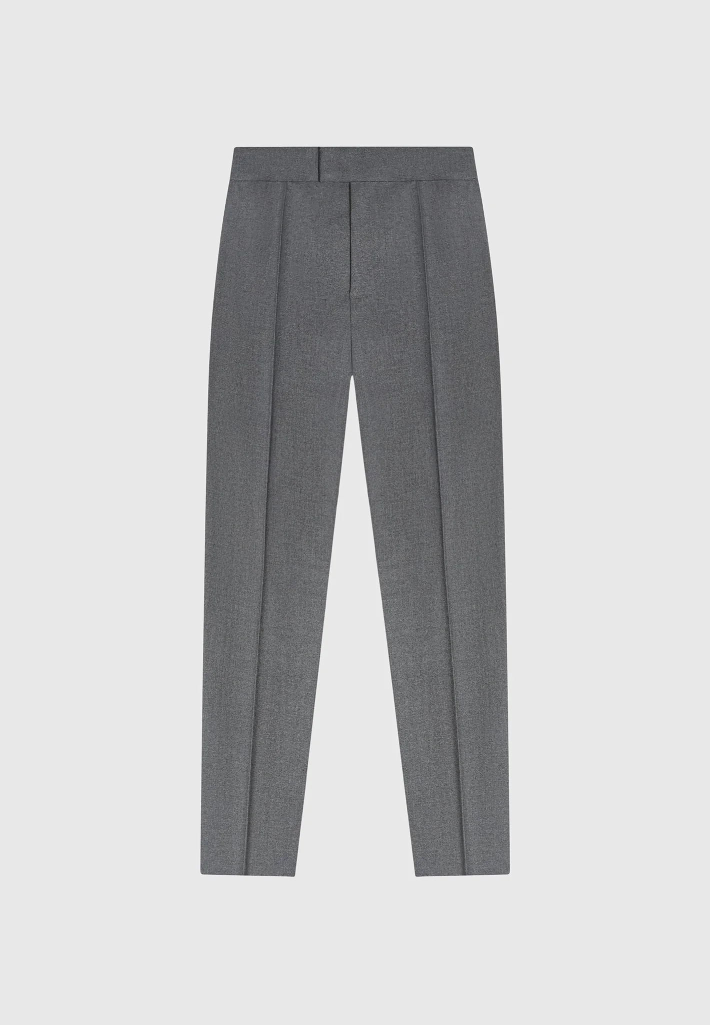 Elevate your wardrobe with our Slim Fit Pleated Tailored Trousers in Grey, featuring a modern tailored fit with a tapered hem for a refined look. With side slip pockets and a pleat to crease detail, these trousers effortlessly blend practicality with style. Perfect for both smart casual and formal occasions, these versatile trousers are a must-have addition to your collection. Pair with the Tailored Harrington Jacket in Grey for a complete ensemble.
