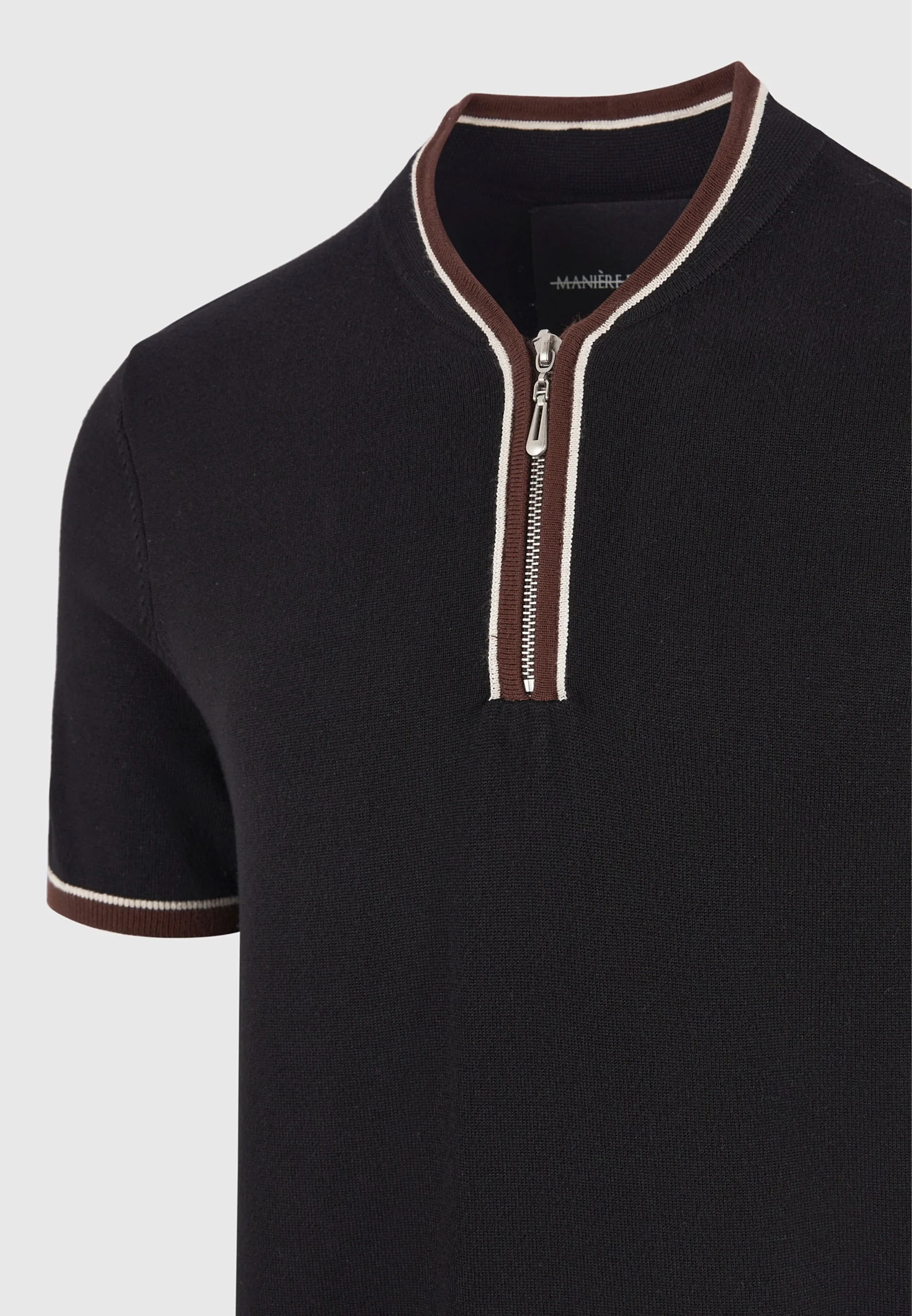 Clement – Crew Neck Zip Polo Shirt – Black