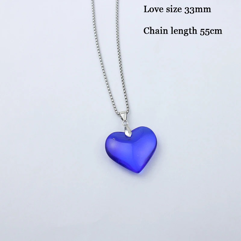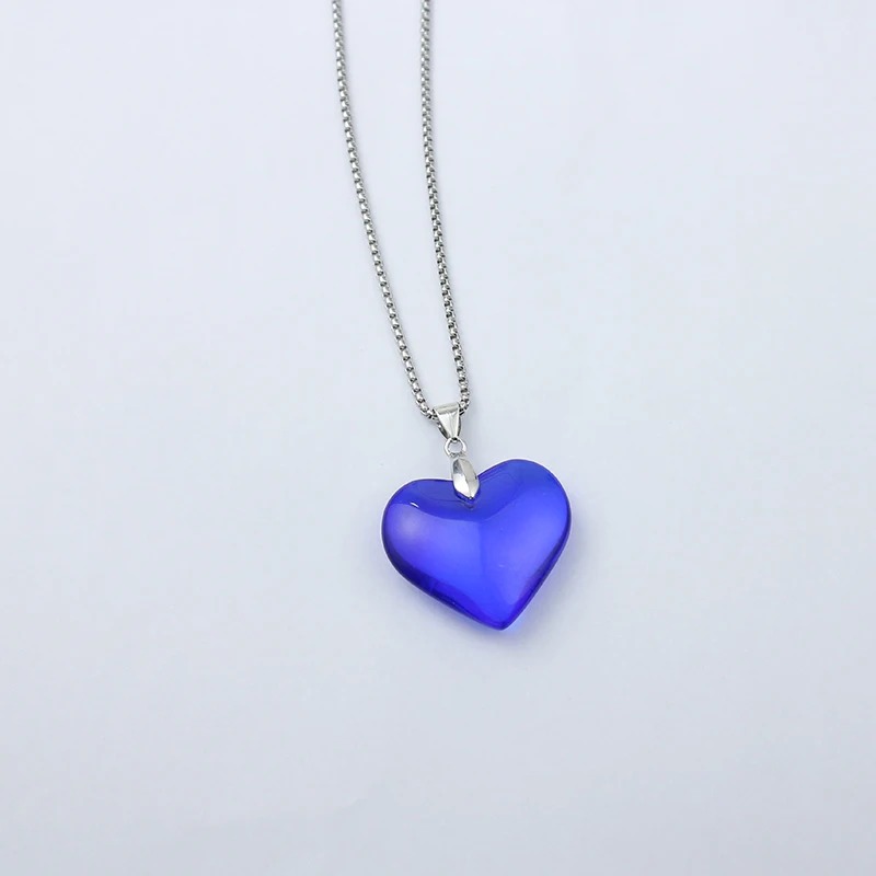 Un collier à cœur bleu translucide, symbole d’amour et de mystère.