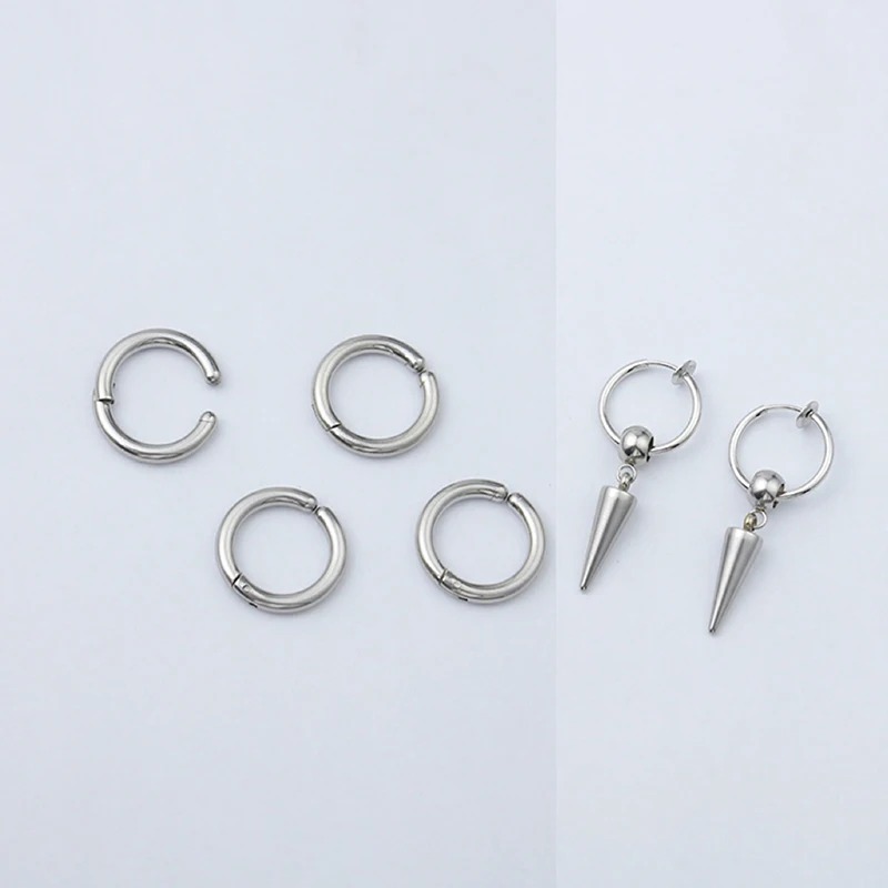 Des boucles d’oreilles en acier argenté ornées de pointes métalliques, évoquant puissance et détermination.