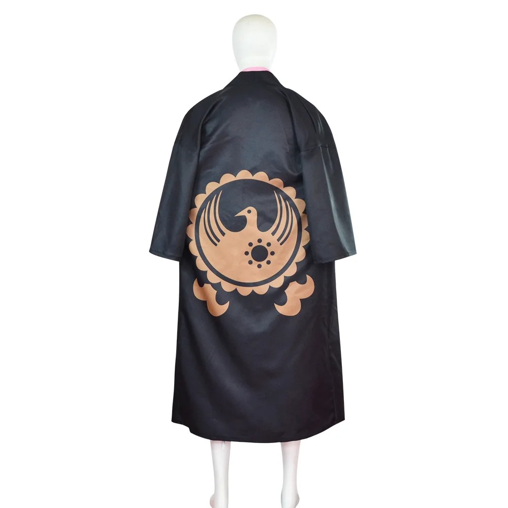 - Un haori noir, orné de motifs traditionnels japonais pour une touche d’élégance.