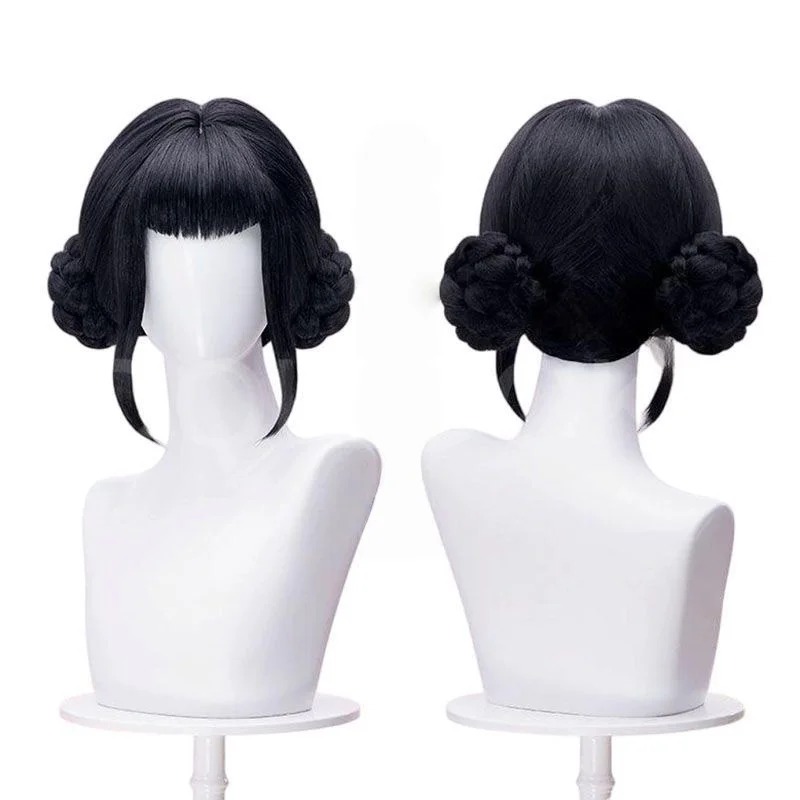 La perruque recrée fidèlement la coiffure sophistiquée de Zoey : deux chignons tressés entourant une frange droite, pour un look harmonieux et gracieux.