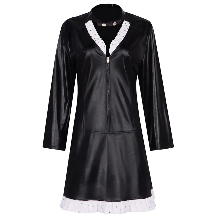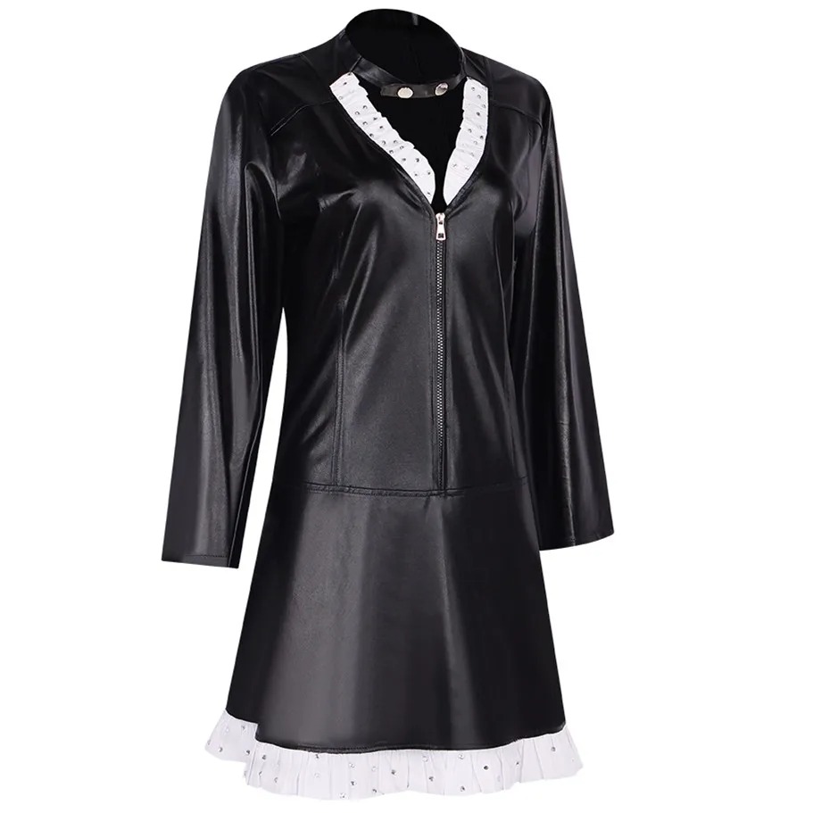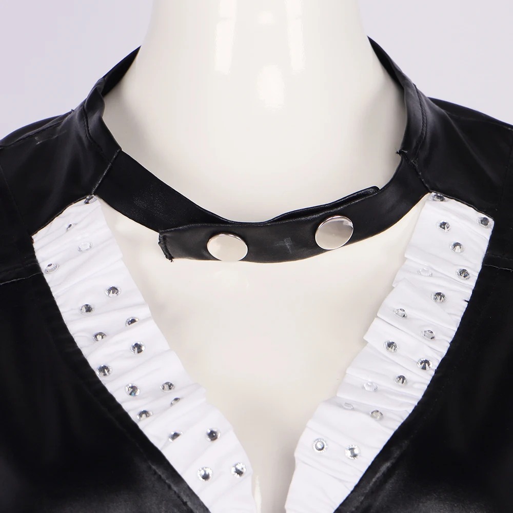 Ce costume est fabriqué à partir de matériaux de haute qualité et est conçu pour durer. La robe en cuir marron foncé est élégante et flatteuse, et les manches longues sont parfaites pour les journées plus fraîches. Le costume est également livré avec un chapeau et une cravate assortis pour compléter le look.