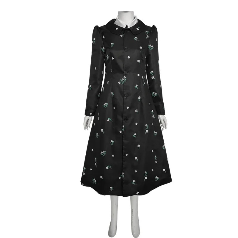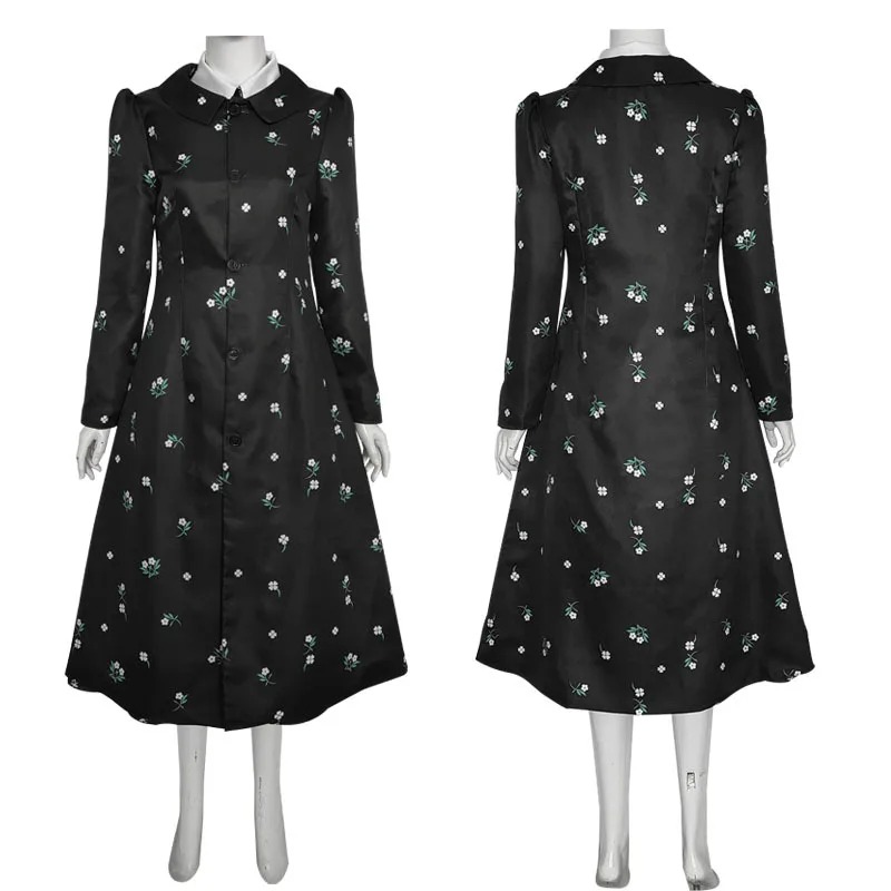 Costume Cosplay Wednesday Addams – Robe Noire Longue à Motifs Floraux