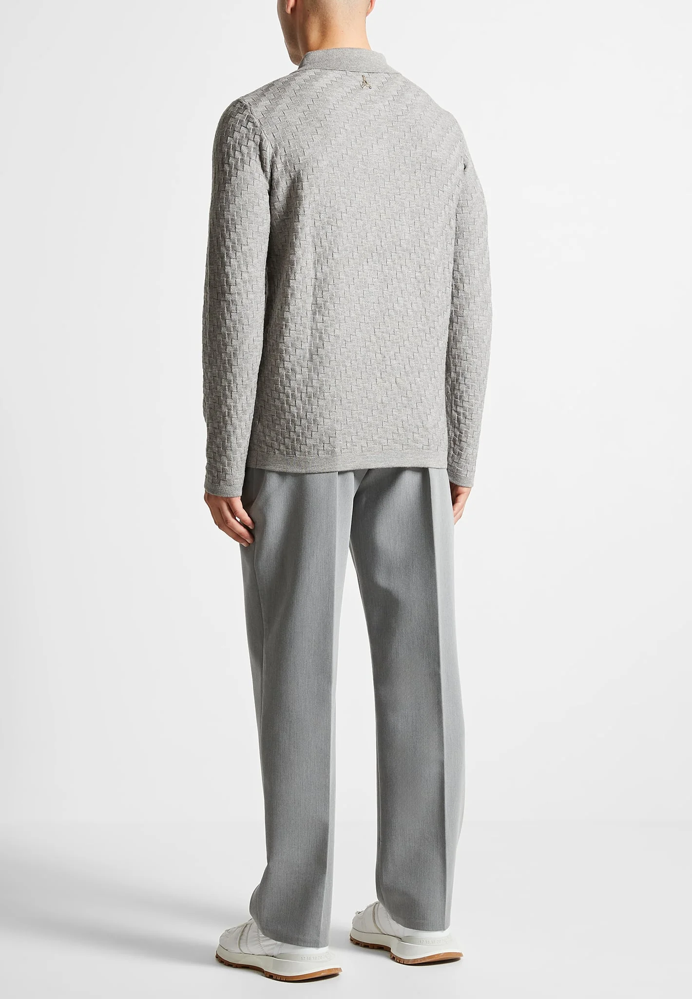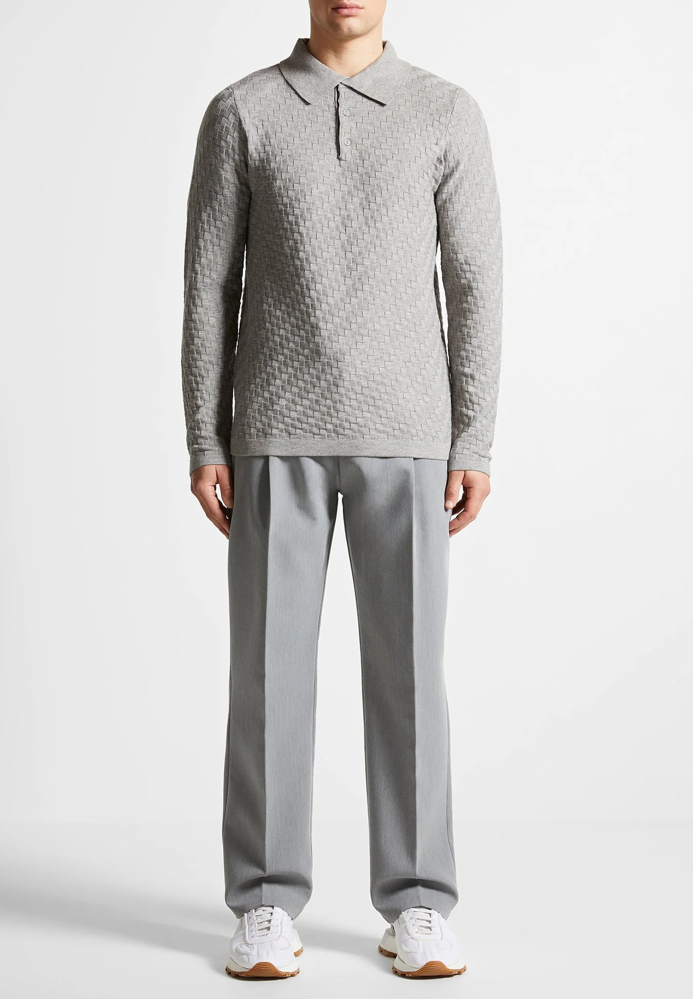 Cotton Blend Waffle Knit Long Sleeve Polo Top – Grey