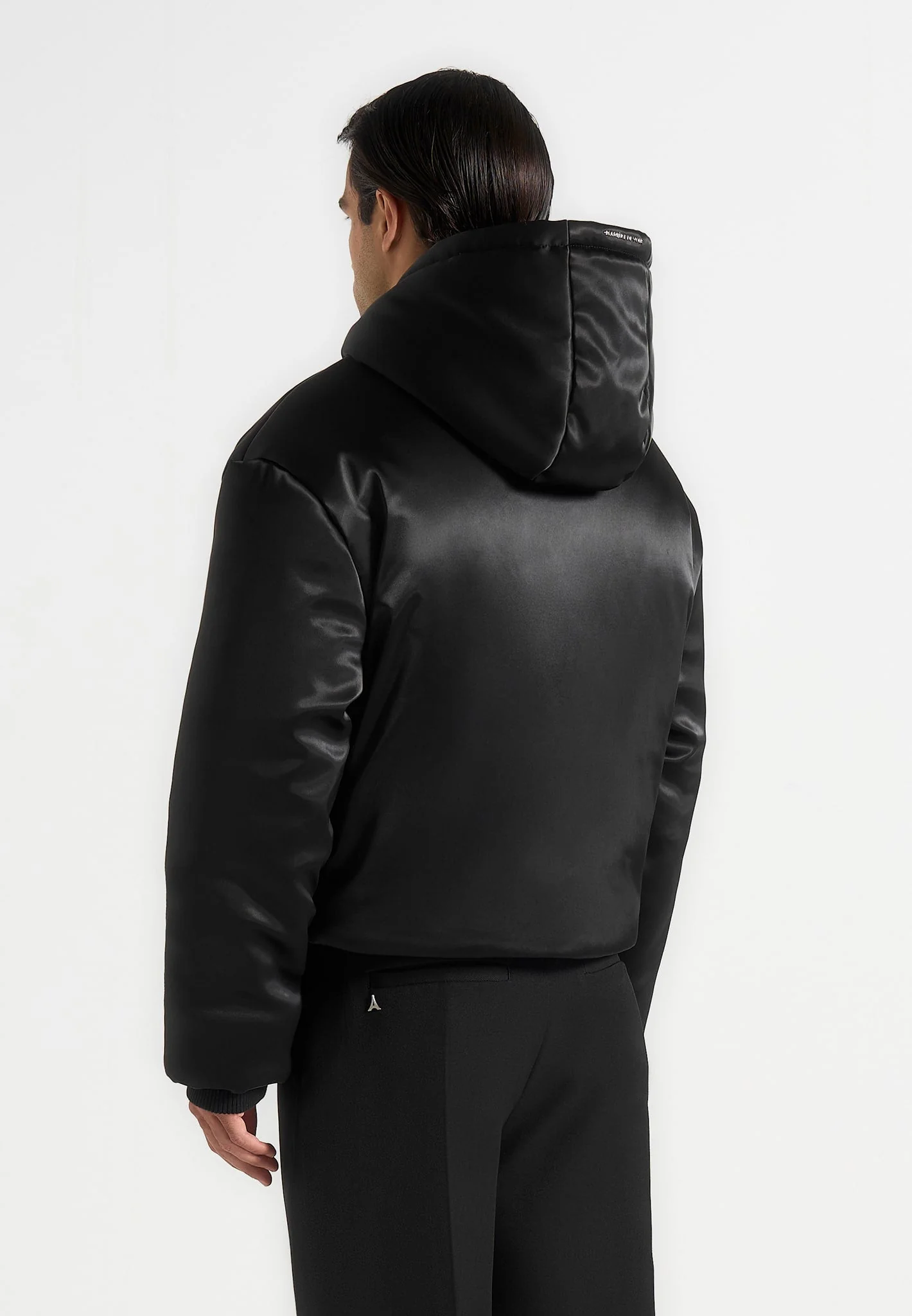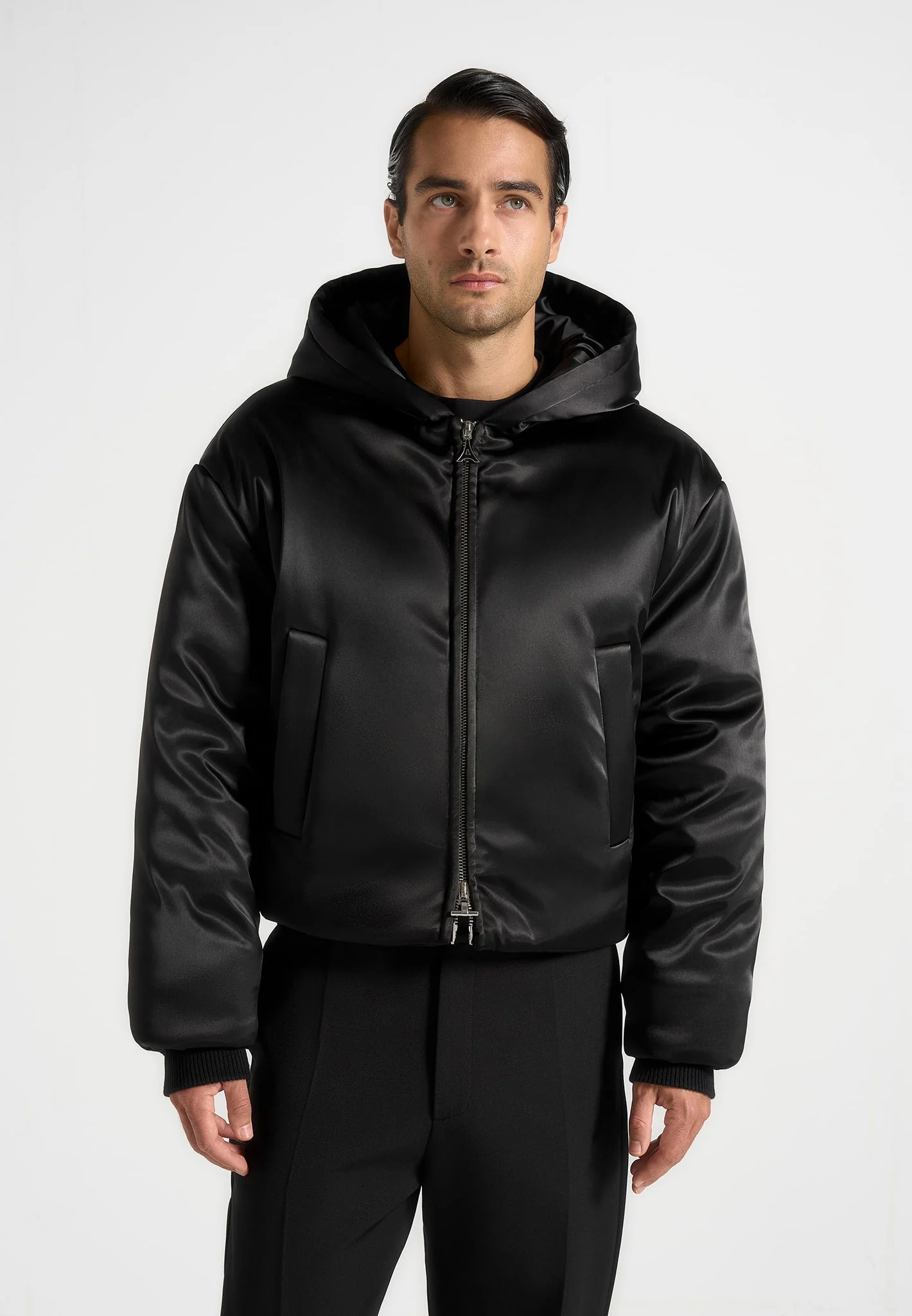 Dario – Satin Cropped Hooded Jacket – Black