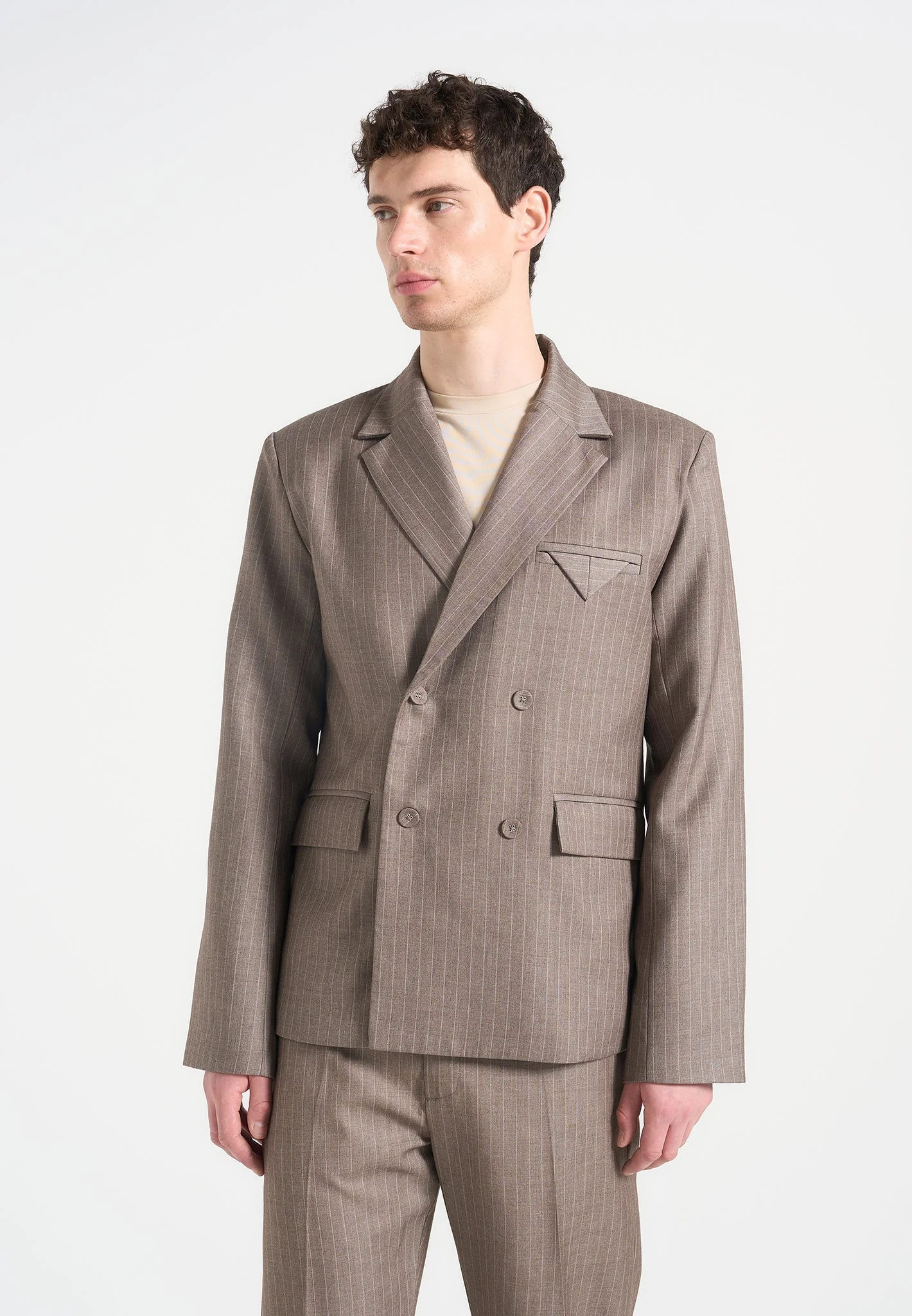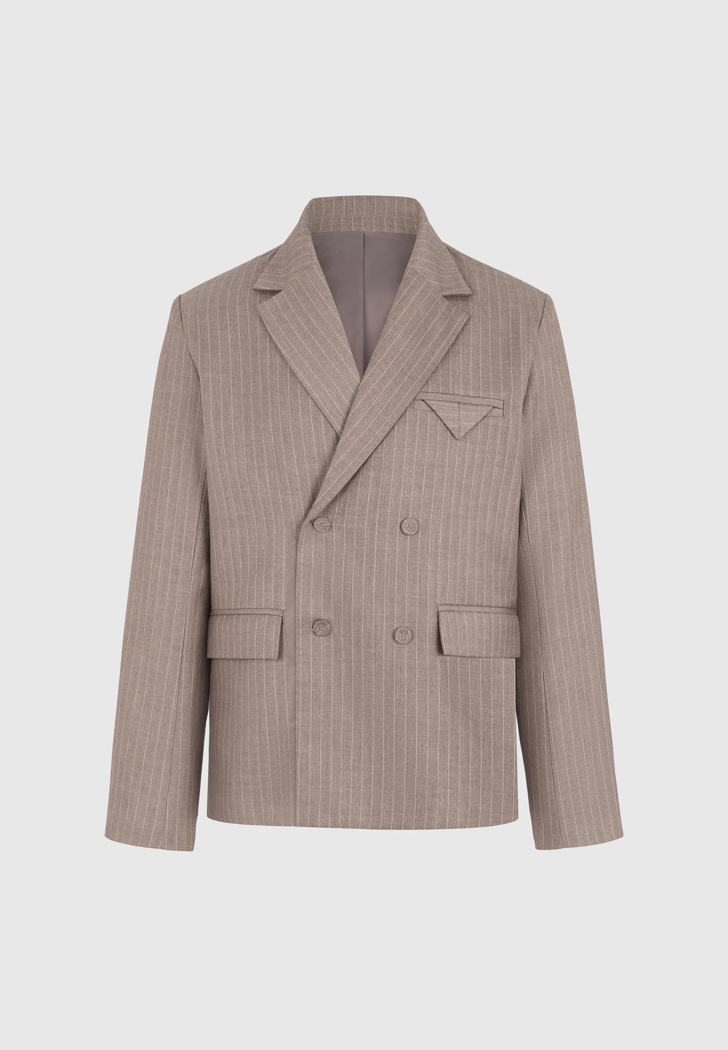 Didier – Double Breasted Pinstripe Suit Jacket – Taupe