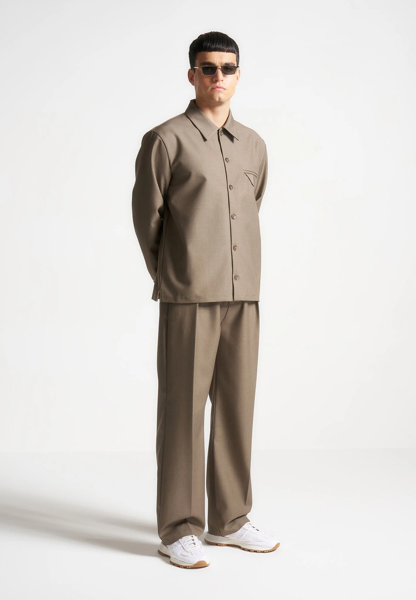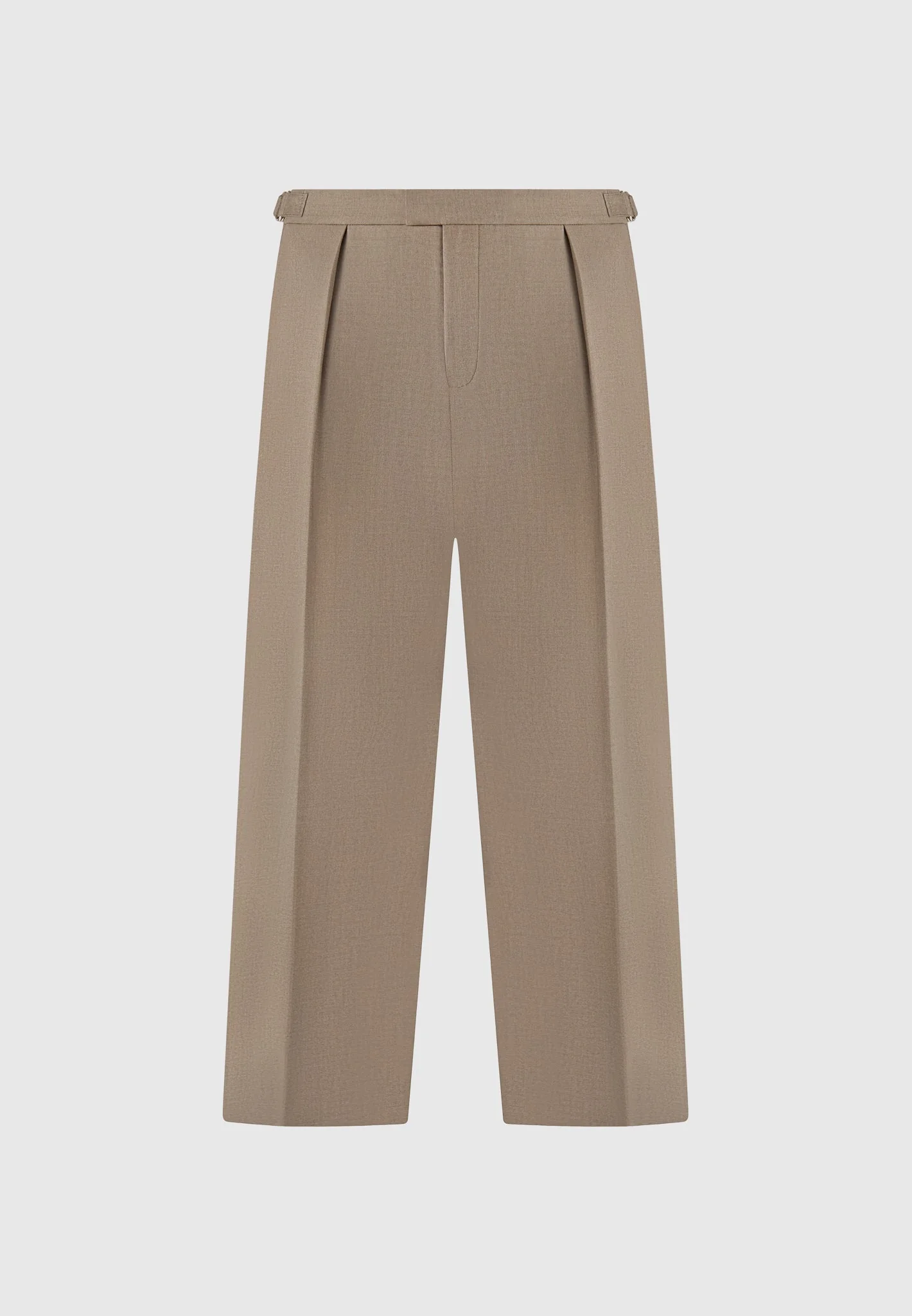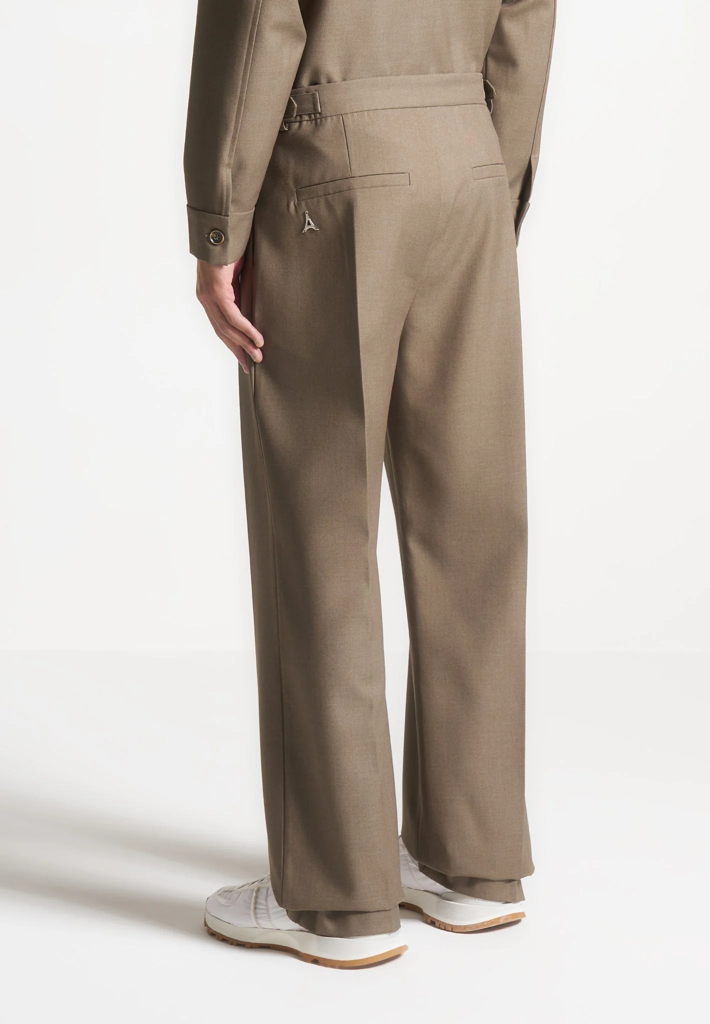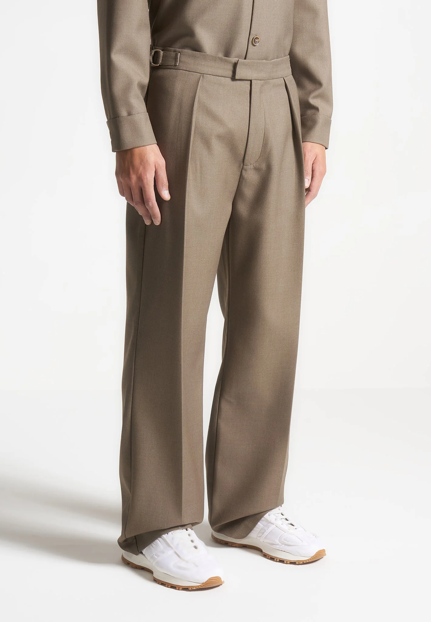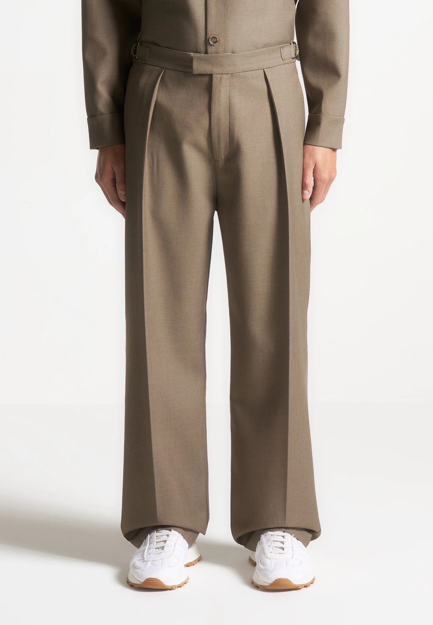 Dorian – Relaxed Fit Hatched Pleated Tailored Trousers – Khaki