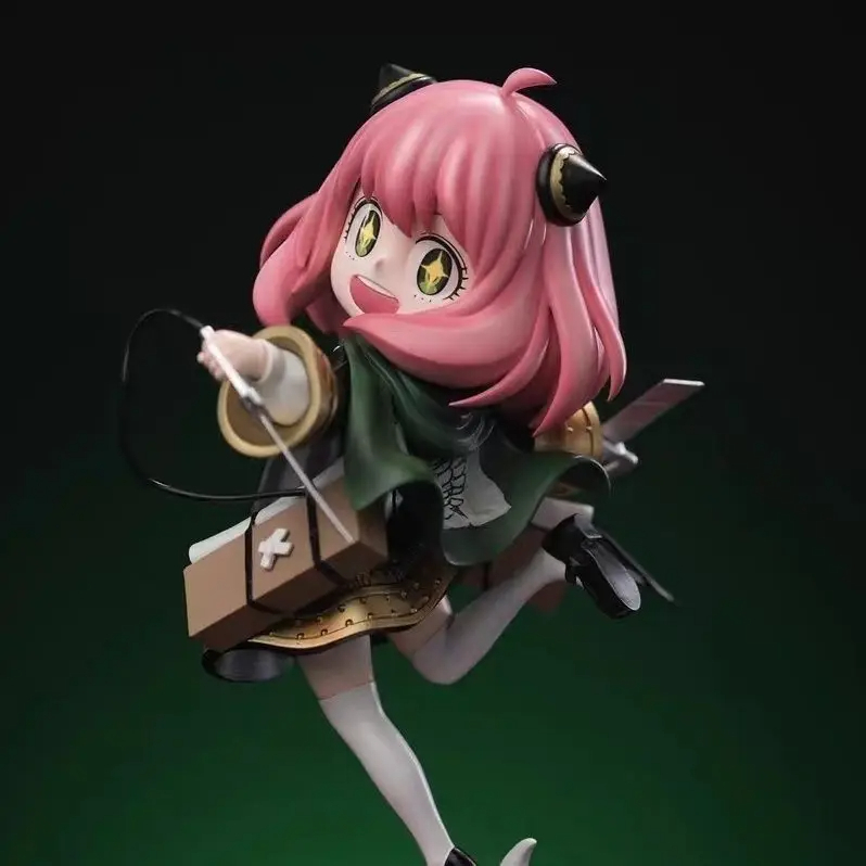 Figurine Anya Forger Cosplay Levi Ackerman 18 cm en PVC premium. Crossover inédit Spy x Family x AoT avec deux visages interchangeables.