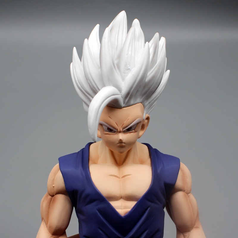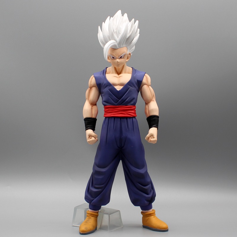 Figurine Manga Dragon Ball Gohan mesure 39cm et est fabriquée en PVC. Elle représente le personnage avec des cheveux blancs, ce qui montre une de ses transformations les plus puissantes dans l’anime.