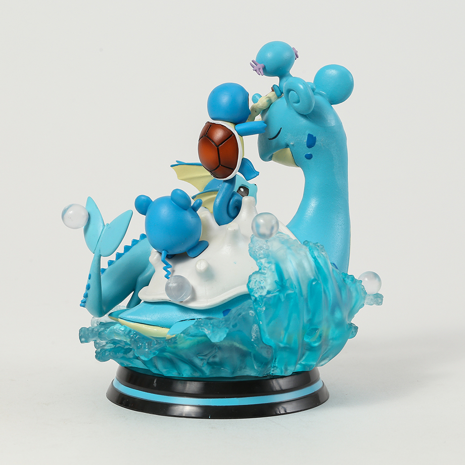 Figurine Manga Pokemon EAU mesure 16 cm de hauteur et est fabriquée en PVC de haute qualité. Elle représente le célèbre Pokémon aquatique de l’anime Pokémon, avec son corps bleu foncé et sa carapace en forme de voile blanche. Lapras est représenté en train de flotter sur une surface d’eau en train de glisser doucement, ce qui ajoute un aspect dynamique à la figurine.