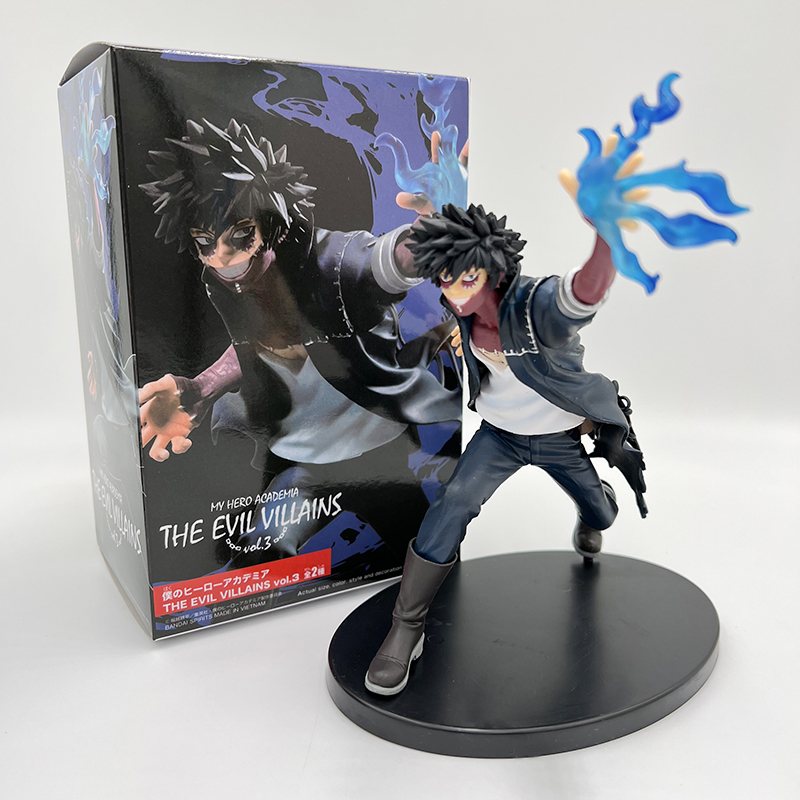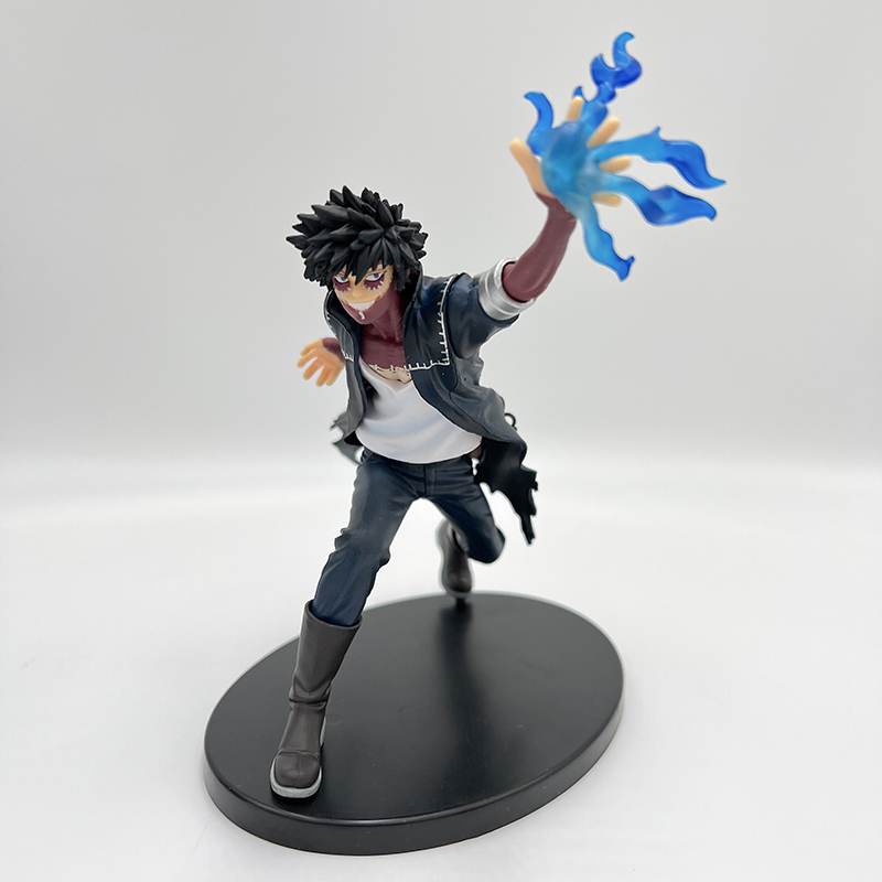 Figurine My Hero Academia Dabi mesure 17 cm et est fabriquée en PVC. Elle représente le personnage de Dabi en train de se battre, avec une posture dynamique et des flames bleus sortant de sa main gauche, créant une ambiance de combat intense. Les détails de la figurine sont particulièrement soignés, avec une grande attention portée aux traits de son visage, à la texture de ses vêtements, ainsi qu’aux flammes qui l’entourent.