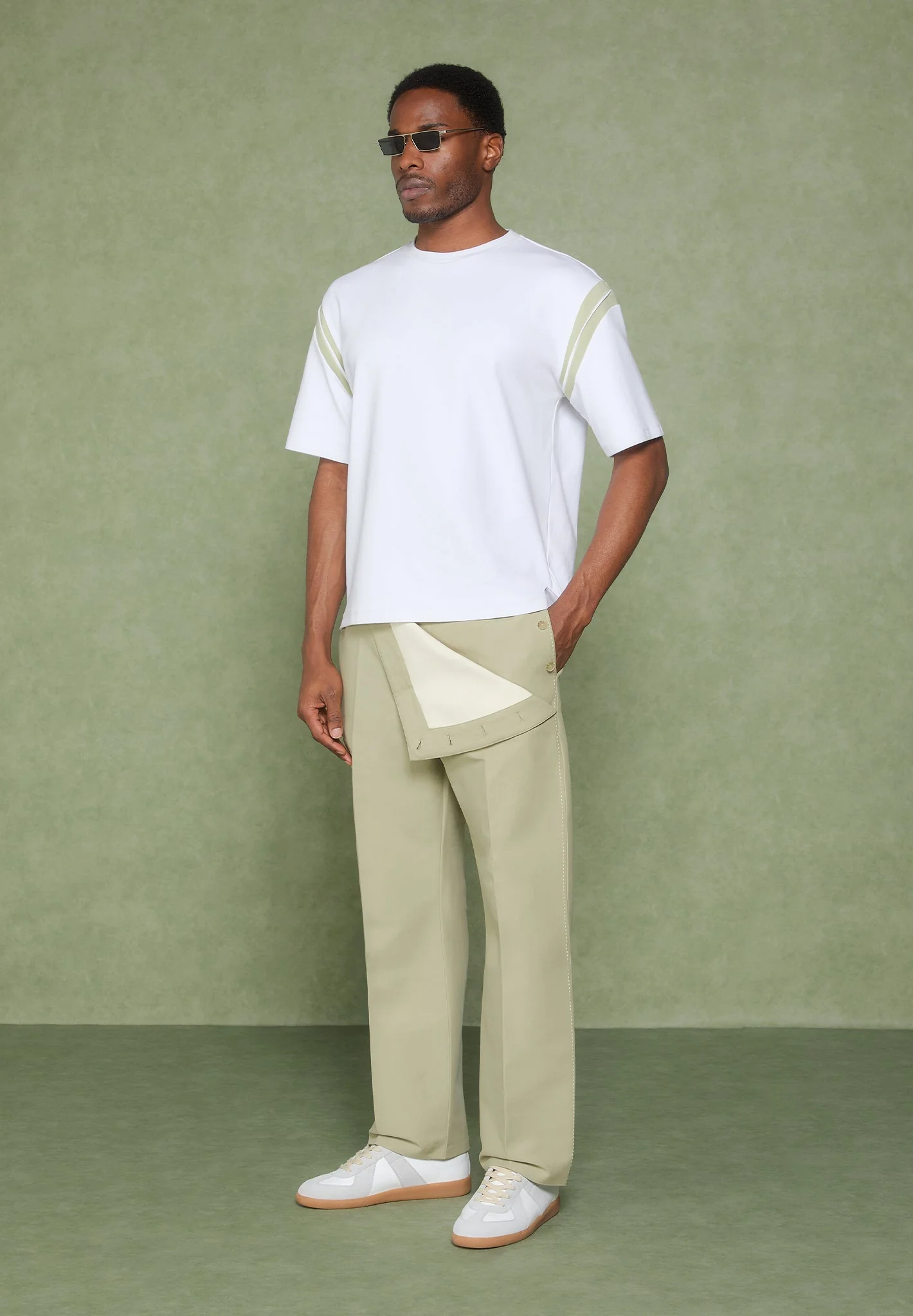 Refine your wardrobe with the Foldover Trousers, where modern design meets tailored precision. Featuring a unique front flap secured by concealed buttons, they offer a sleek, minimal finish. Crafted from high-quality 100% cotton, these trousers provide a relaxed fit enhanced by a sharp central press-crease for a structured silhouette.
