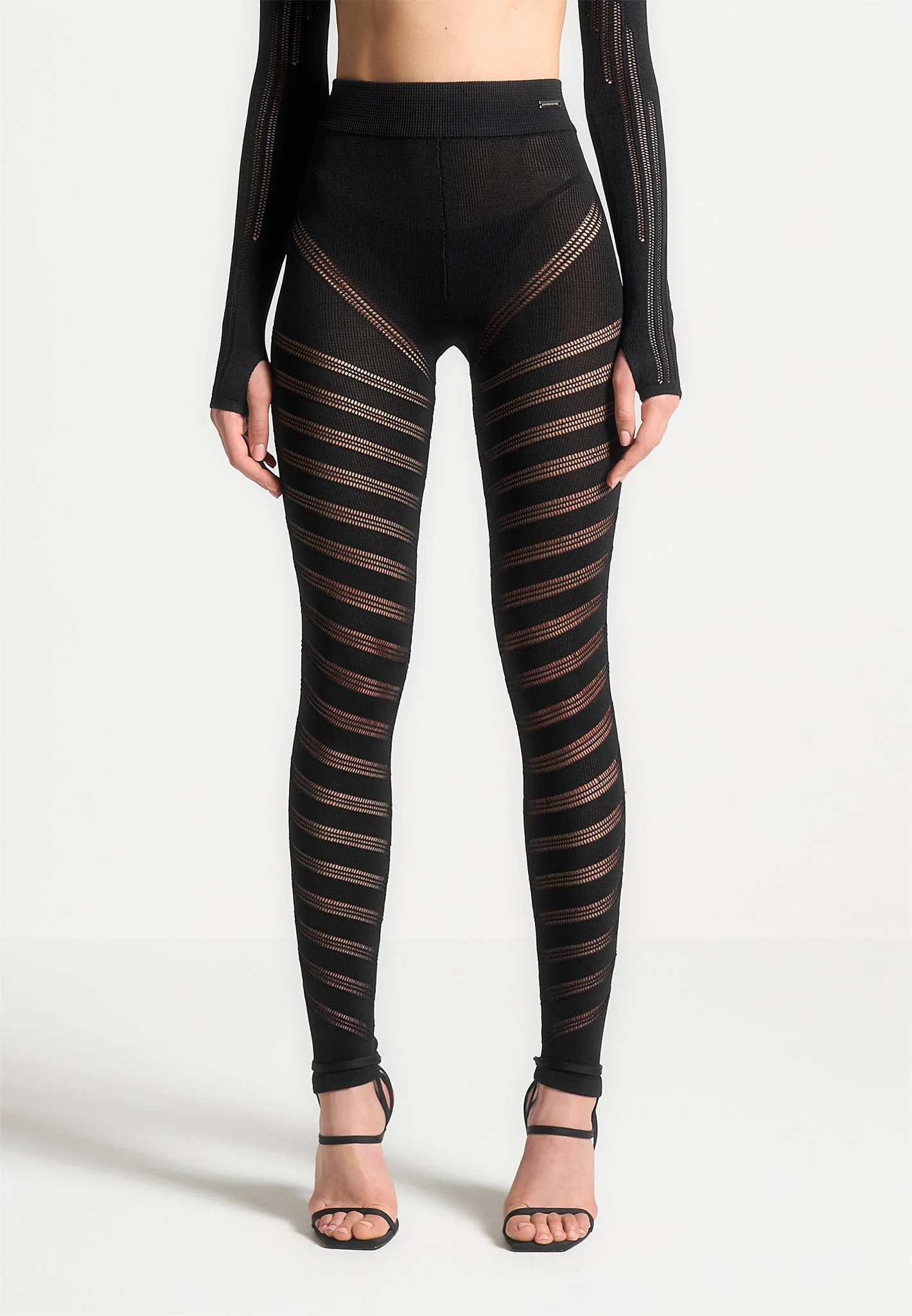 High Waisted Knitted Spiral Contour Leggings – Black