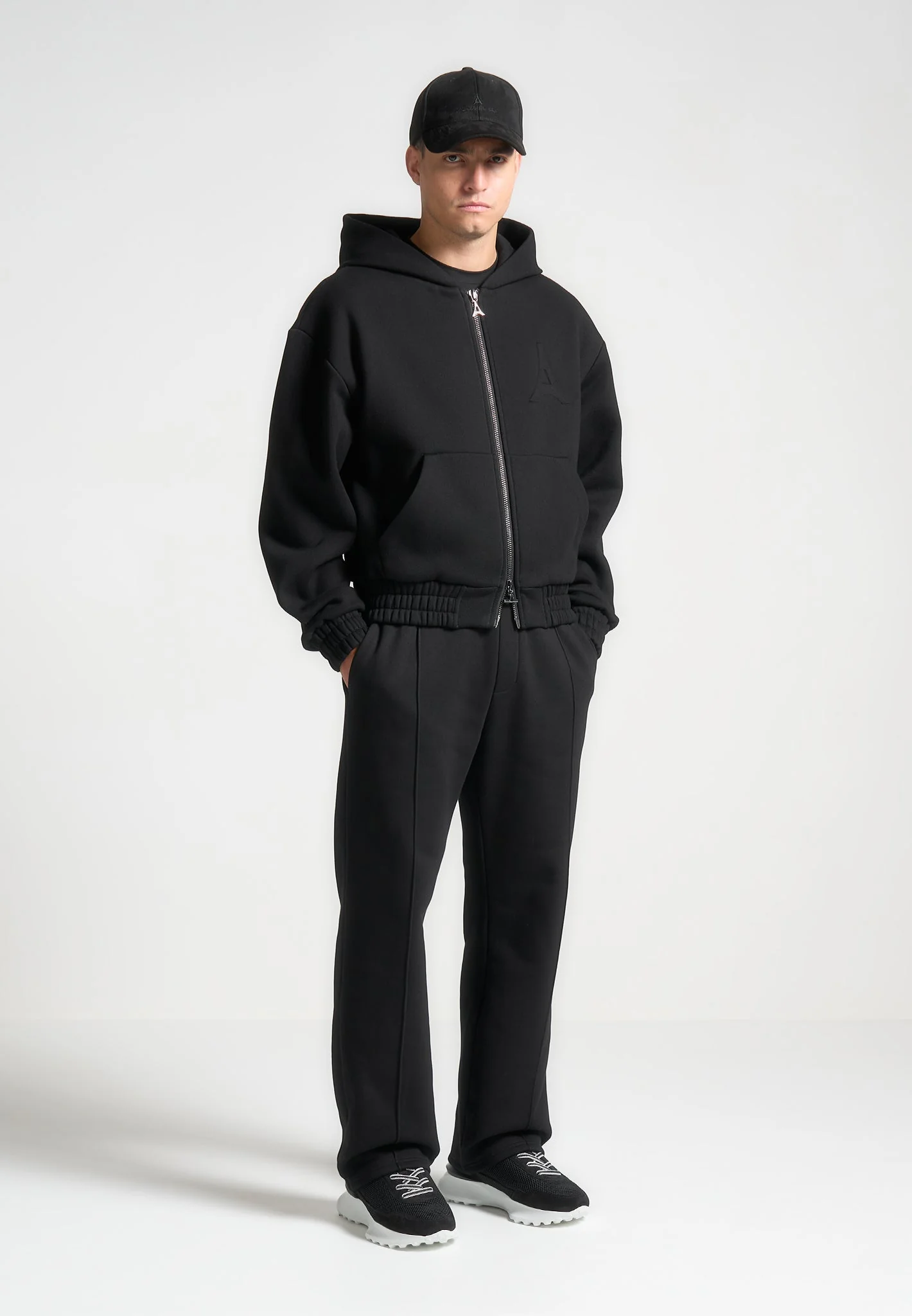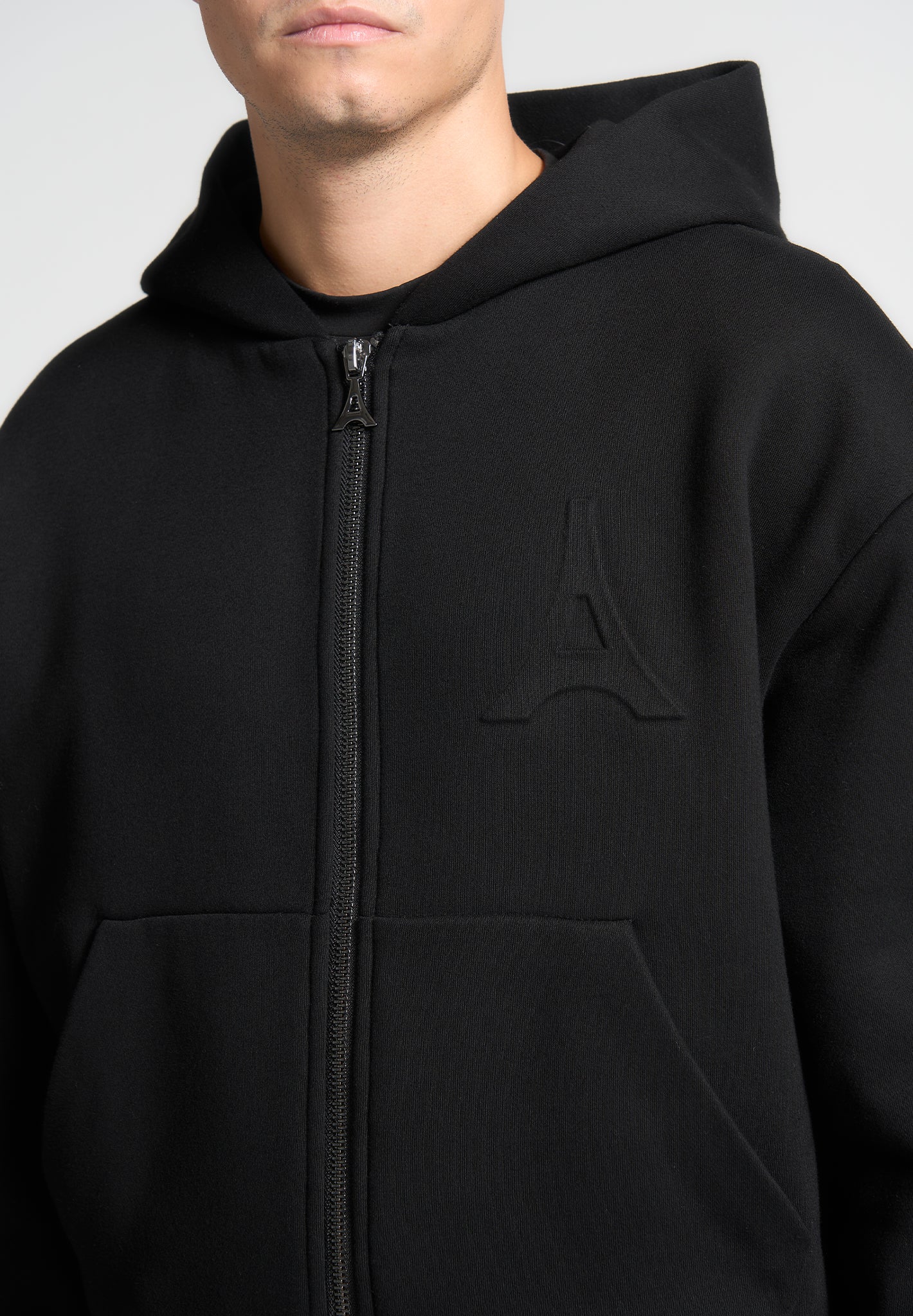 Experience the perfect blend of comfort and style with the Éternel 420GSM Eiffel Embossed Zip Hoodie in Black. This hoodie features a full zip hooded silhouette and a relaxed fit, crafted from heavyweight 420GSM fabric for exceptional durability and warmth. Pair effortlessly with the Éternel 420GSM Eiffel Embossed Pintuck Joggers for a coordinated and refined casual look.