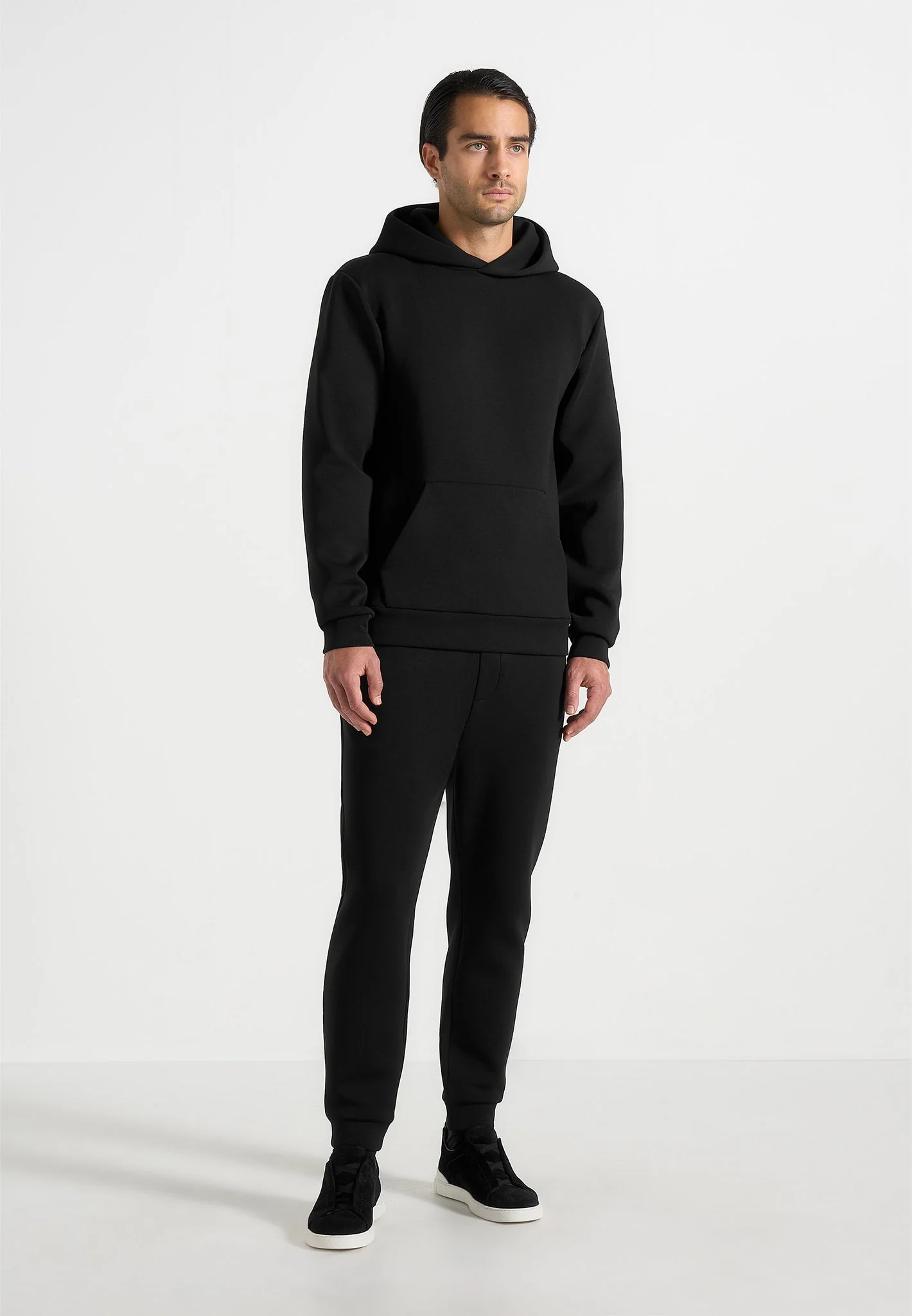 JS007 – Neoprene Minimal Regular Fit Hoodie – Black