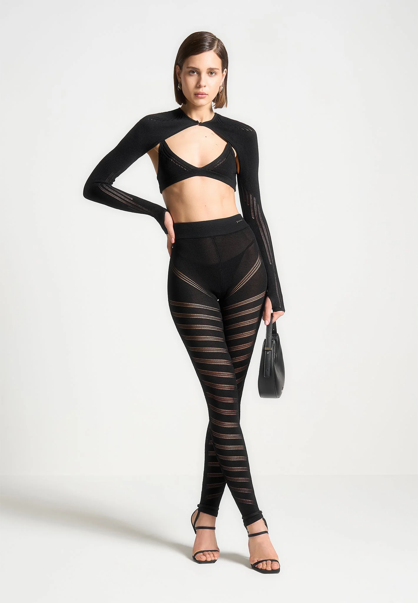 Knitted Sleeve Overlay with Bralette – Black