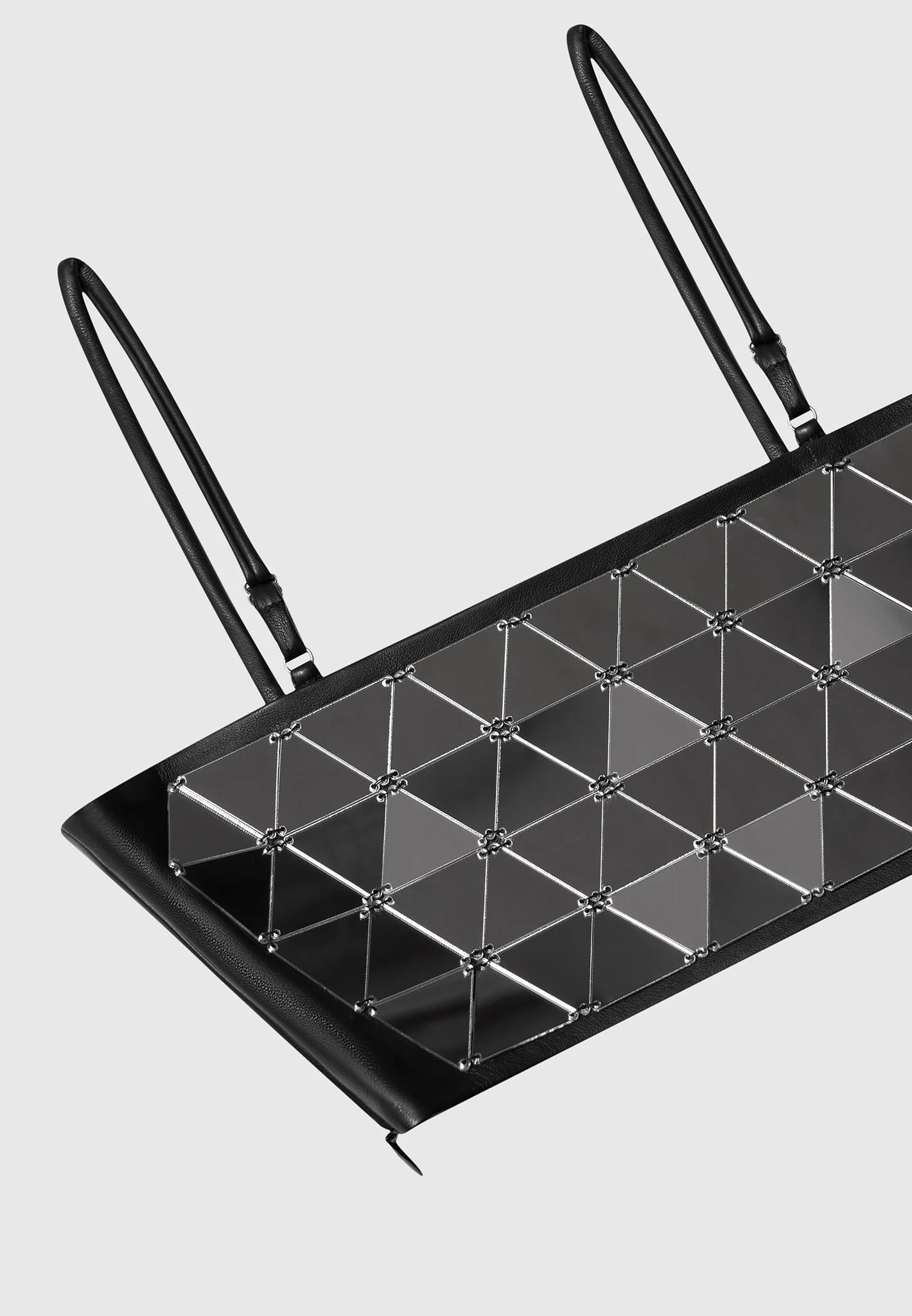 This Vegan Leather Mirrored Bandeau Top features a unique shape and design, guaranteed to make you stand out from the crowd. With adjustable straps, you can customise the fit to your liking. Up your fashion game with this stylish and glamourous piece.