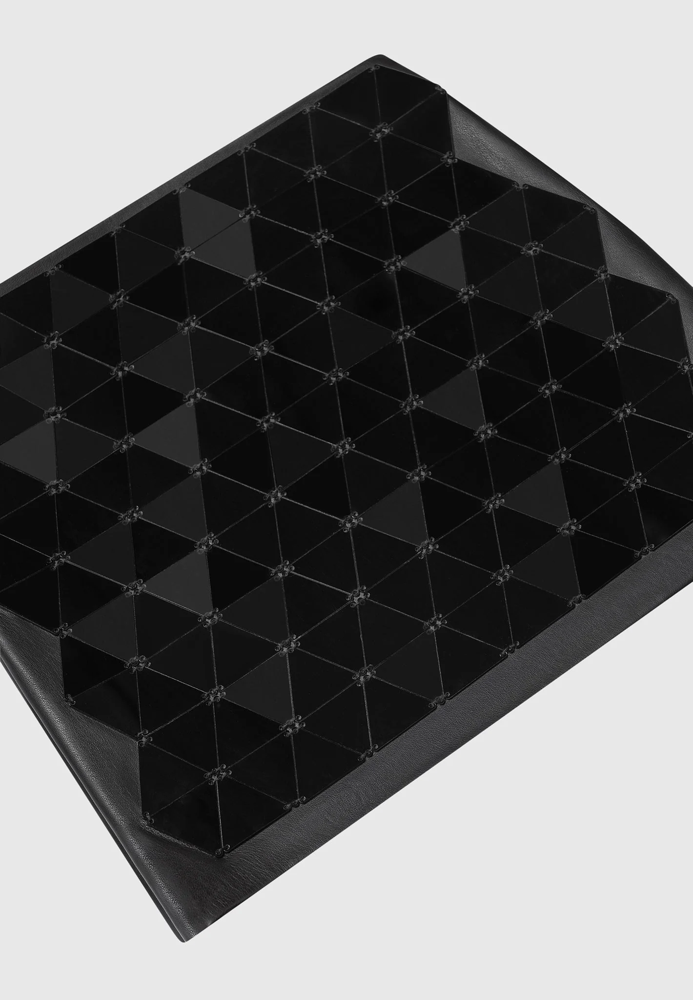 This mini skirt is crafted from luxurious vegan leather and beautifully embellished with unique mirrored accents, ensuring you stand out in any crowd. Add a statement to any outfit with this chic, stylish piece.
