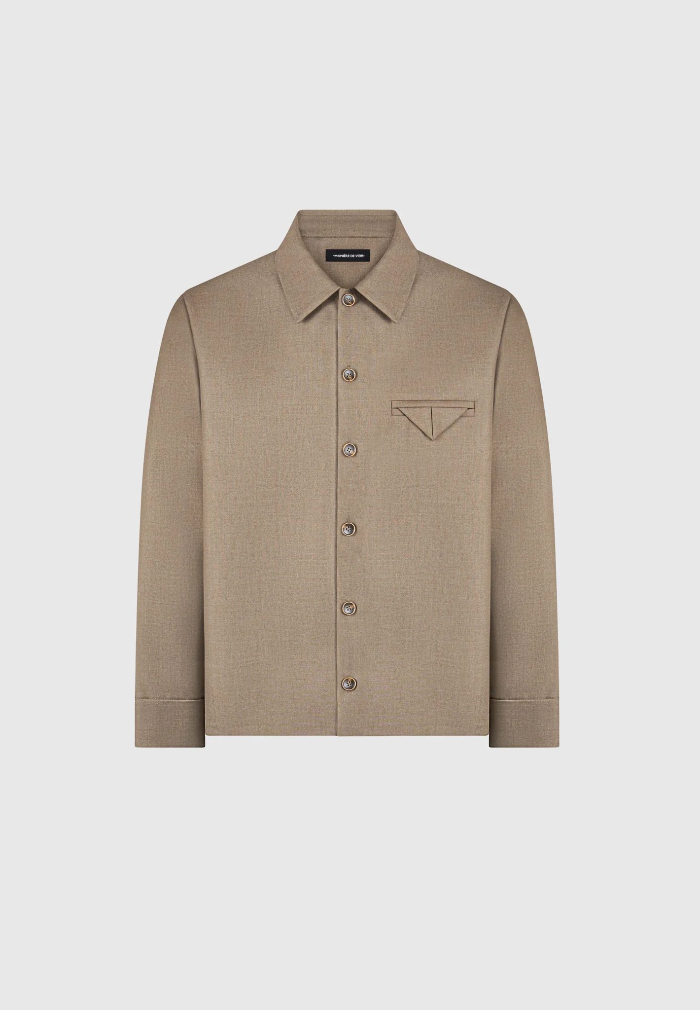 Leo – Hatched Tailored Long Sleeve Overshirt – Khaki